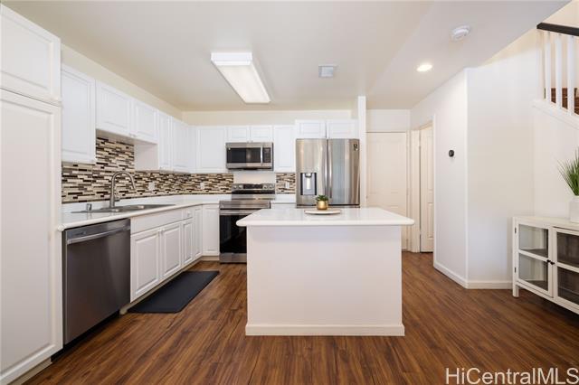 Welcome to this well-maintained 3-bedroom townhome in the desirable Fairways Edge neighborhood! Inside you’ll find laminate flooring throughout—no carpet—creating a clean, modern feel that’s easy to maintain. The functional layout provides an open floorplan on the lower level, with all 3 bedrooms upstairs. Attached 2-car garage connects through the kitchen for ease to unload the groceries! Enjoy a low-maintenance front yard space, offering the perfect spot to enjoy outdoor space with minimal upkeep. Conveniently situated next to the community pool and area has walking/bike paths. Enjoy close proximity to the heart of Ewa Beach’s shopping and dining, as well as nearby Ka Makana Ali‘i in Kapolei (Oahu’s “Second City,”) offering a wide range of retail, restaurants, and entertainment options. A great opportunity to own in a community with easy access to parks, golf courses, and all that West Oahu has to offer! *VA Assumption option at 5.624% with low gap - for VA qualified Buyers*