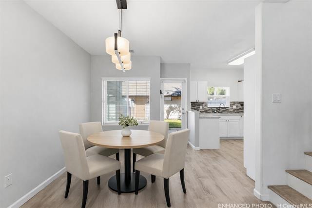 This 3 bedroom, 2 and a half bath, located in the vibrant, family-friendly, heart of Ewa Gentry, Fairways Edge in Ocean Pointe is ready to welcome its next owners. This bright, open floor plan is very sought out; with that detached 2-car garage connected to the main home by a private yard, you can truly enjoy your space in peace. Fresh paint, upgraded stainless steel appliances, vinyl plank flooring all across the home, spacious bedrooms with a walk-in closet in the primary. Ample street parking and guest parking available with parking permit. Access to community amenities such as the luxury pool, jacuzzi, community center, and BBQ area just a few steps away. As well as many parks, walking paths, green spaces, and golf courses within just a few miles. PRIME location in Ewa Gentry; 5mins from One‘ula Beach, Wai Kai Lagoon & Wave Pool, Laulani Shopping Center and Ka Makana Ali'i Mall, 10 minutes to UH West Oahu and the Kroc Center, 15 minutes to Costco, Target, and 10-15 minutes to the beautiful beaches on the west side of Oahu.