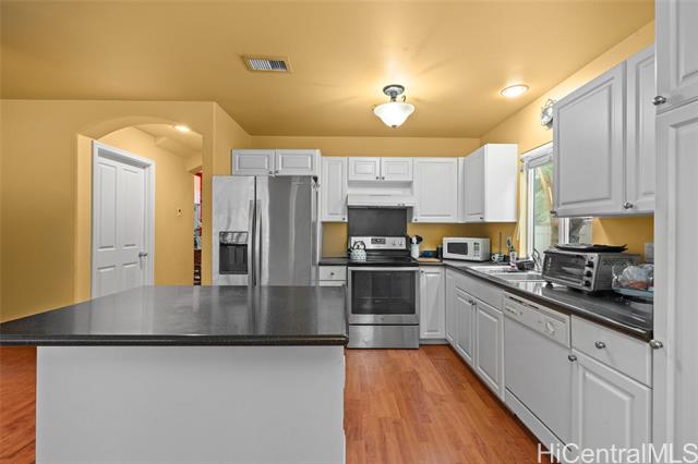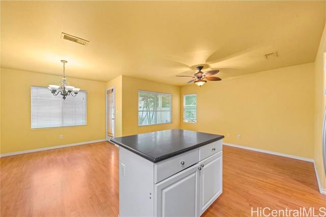 Nestled in the tranquil community of Ke Noho Kai Ocean Pointe, this delightful detached single-family home is a blend of comfort and style. As you arrive, the inviting yard offers a perfect spot for sunny afternoons. Inside, expansive living areas bathed in natural light feature laminate flooring throughout. The open-concept design flows into a stylish kitchen with a center island, perfect for gatherings, while a dedicated dining area enhances the mealtime experience. With two spacious living rooms, there's plenty of room for relaxation and entertainment, plus three generously sized bedrooms provide peaceful retreats for restful nights. An enclosed garage ensures secure parking and storage, while extra open parking on the side adds convenience. Additionally, photovoltaic panels enhance energy efficiency, making this home a sustainable choice. Experience the ideal blend of indoor and outdoor living in this exceptional property, where comfort meets charm in Ke Noho Kai Ocean Pointe.