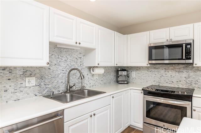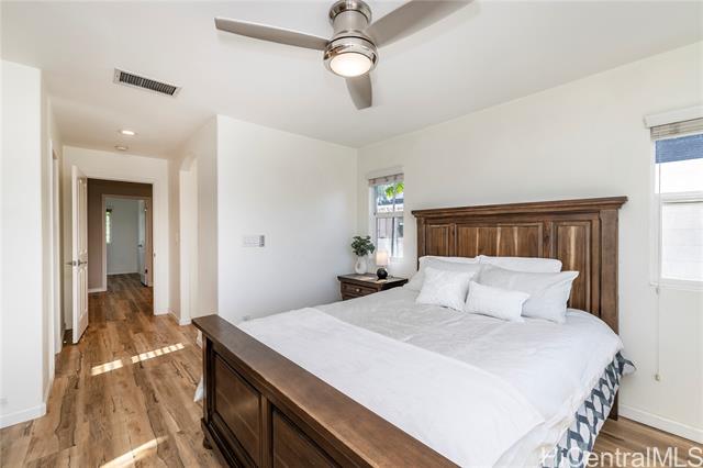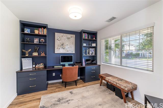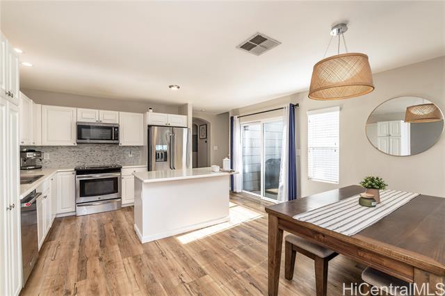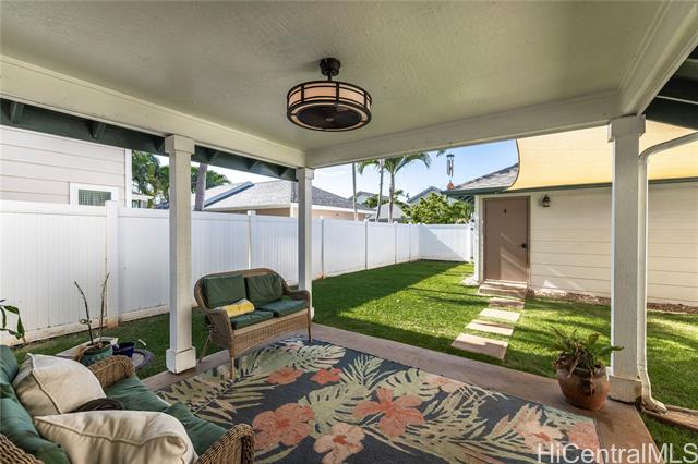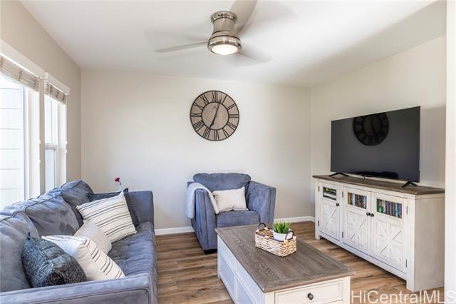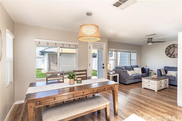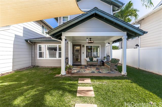 Immaculate 3 bed 2.5 bath with a ground floor den! An open and efficient floor plan flows seamlessly from kitchen to dining to living. Flooring throughout the home has been upgraded to luxury vinyl planks. A spacious, fenced in, yard presents the ideal setting to entertain family and friends. Stay cool on those warm summer months with central AC powered by 6 PV panels on net metering. Conveniently located minutes away from Wai Kai, Laulani Village Shopping Center, Costco, world class golf, and much more!
