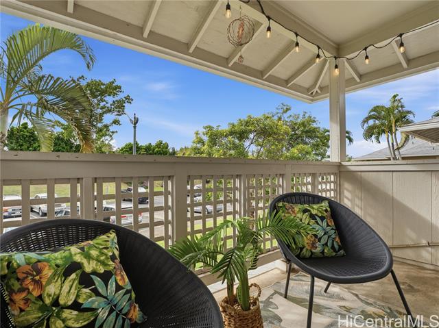Rarely available 1BR/1BA split-level townhouse in the highly desirable West Loch Fairways. Enjoy ultimate privacy featuring no neighbors above or below. This well-maintained home boasts an open, functional floor plan, a gas range for the home chef, and a private lanai for outdoor relaxation. Notably low maintenance fees, providing an affordable and low-stress ownership experience. Includes one assigned parking stall with ample street parking nearby. Residents also enjoy access to a community clubhouse and recreation room, ideal for hosting parties and events. Situated in a lush, park-like setting with walking paths for jogging or pets, this is the first community off the H-1—making it a premier hub for commuters to UH West Oahu, hospitals, military bases, and Ka Makana Ali’i Mall. It is a perfect blend of affordability, value, and location.