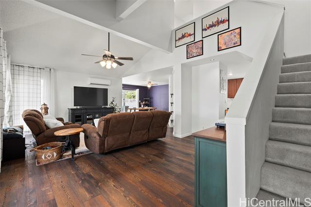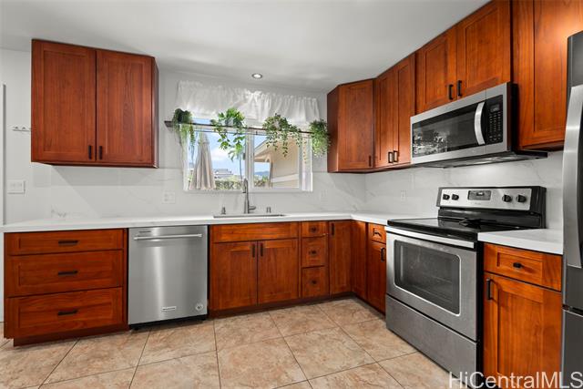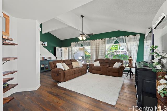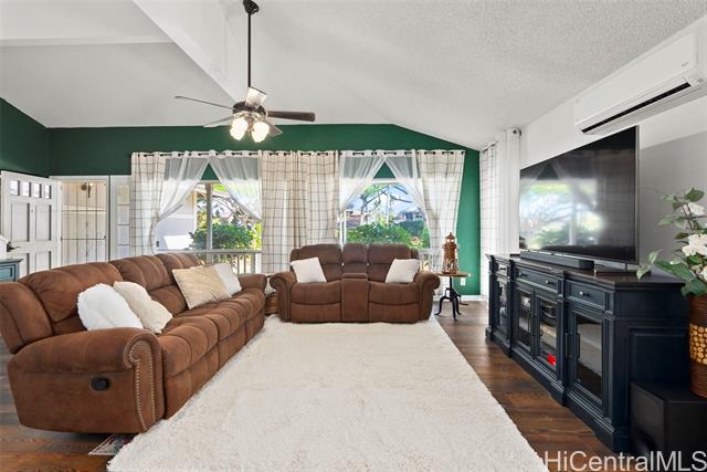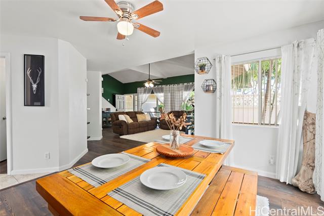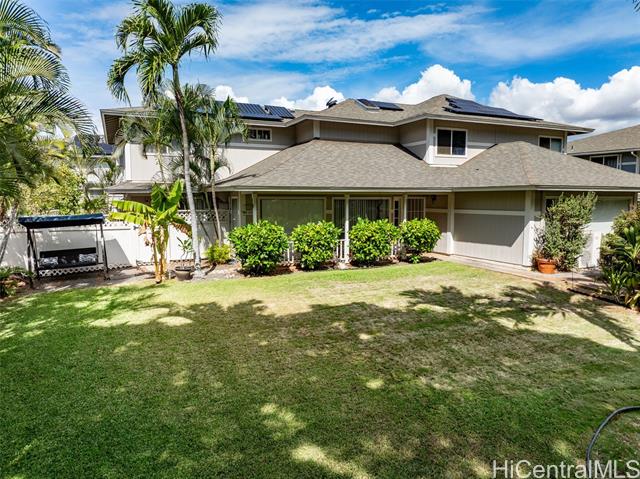 Experience modern island living in this beautifully updated home in the peaceful and sought-after West Loch Fairways community. Step inside to find a large living room with vaulted ceilings and luxury vinyl plank flooring. The dining room conveniently opens to a side yard with covered lanai. The newly remodeled kitchen (2023) features quartz countertops and stainless steel appliances. Enjoy year-round comfort with split A/C units (2021), and ceiling fans in every bedroom (2020). The home also features a new roof, 2-car garage door (2023), a PV system (2017) for energy efficiency, and a large level front yard. Conveniently located near the H-1 freeway, this move-in-ready home perfectly blends comfort, style, and the relaxed island lifestyle. (VA assumable loan available)