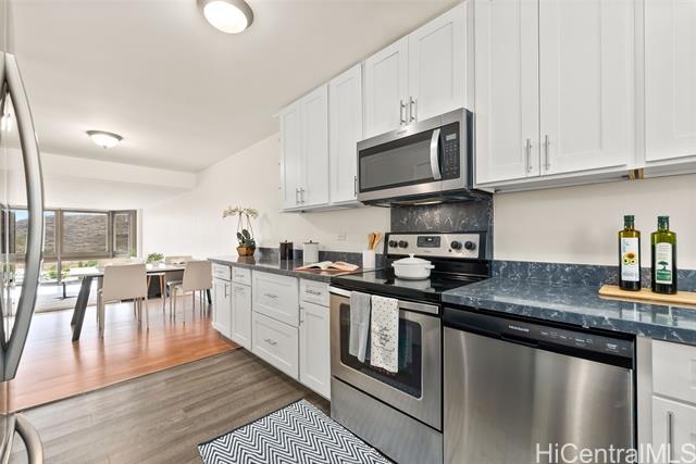 NEW LISTING!! Take in amazing ocean, marina, and mountain views from this beautifully updated 2 bdrm/1.5 bath condo with 2 covered parking in the highly desirable Mauna Luan. Boasting over 1,200 sq. ft. of interior living space, this high-floor unit offers an open floor plan with hard surface flooring throughout, an upgraded kitchen with stainless steel appliances, and floor-to-ceiling windows that fill the home with natural light. Enjoy Mauna Luan’s exceptional resort-like amenities, including multiple swimming pools and whirlpools, an exercise room, putting green, walking paths surrounded by lush tropical landscaping, BBQ areas, recreation spaces, clubhouse, sauna, security and more! Just minutes from schools, beaches, Costco, shopping and restaurants…must see to truly appreciate!