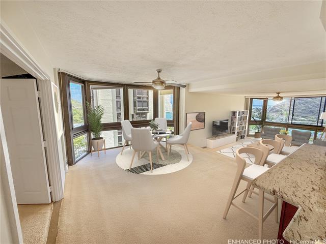 Location, location, location! Rarely available end-unit “L” stack at Mauna Luan with sweeping ocean vistas and two covered assigned parking stalls conveniently near the entrance. This spacious 2-bed / 2-bath, 1,302 sf home sits on the 15th floor and is one of the largest 2-bedroom layouts in the complex. An extra side window brings abundant natural light, cool cross-breezes, and enhanced privacy. The coveted “L” stack is known for its brighter, more open feel compared to interior units. Seller is offering a $10,000 buyer’s credit at closing (with lender approval). Enjoy a generous layout with well-separated bedrooms, expansive living/dining areas, and panoramic views of the ocean and marina. Resort-style amenities include multiple lagoon-style pools, hot tubs, saunas, a fitness center, BBQ pavilions, lush tropical landscaping, and on-site management/security. Nestled in Hahaione Valley, Hawaii Kai, Mauna Luan is minutes from shopping, dining, beaches, and outdoor recreation. A fee-simple property offering one of the best values in East Honolulu — don’t miss this premium end unit with ocean views, extra-large floorplan, and two prime parking stalls!