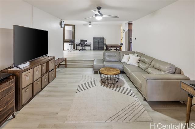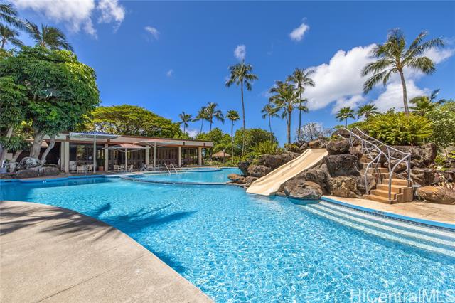 This Mauna Luan West Tower ground-floor end unit offers exceptional privacy and lush garden views in one of the largest floor plans available, featuring over 1,350 square feet with 2 bedrooms and 2 baths. The open area that expands the living and dining areas, creating a bright, spacious layout perfect for entertaining or relaxing. The home includes a beautifully remodeled bathrooms, new flooring, new paint. Two assigned parking stalls, and plenty of guest parking. Enjoy the resort-style amenities that make Mauna Luan one of Hawai'i Kai’s most desirable communities. Residents have access to two lagoon-style swimming pools with waterfalls, multiple hot tubs, putting greens, walking paths, BBQ areas, and beautifully landscaped grounds with streams and waterfalls. Additional features include a recreation center with fitness facilities, racquetball and handball courts, game rooms, saunas, and a resident manager with 24-hour security. Conveniently located near shopping, dining, beaches, and the Hawai'i Kai marina, this home combines spacious, flexible living.