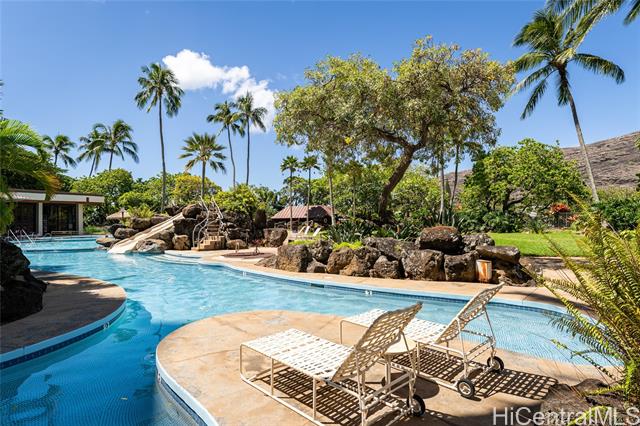 Whether you're enjoying your new living space, swimming under the waterfall, or relaxing by the lush pools and surrounding walkways, this is the place to be! Come see this classicly updated Mauna Luan corner unit and make it your own. From high-end finishes in the the kitchen and living room to the tile floors and warm lighting, this unit shines and surpasses others found in this complex. A private third sleeping area closed off by sliding doors was added to uniquely utilize the space. High-end appliances include microwave, refrigerator, kitchen sink/faucet and window AC units. As many familiar with Hawaii Kai know, no other condos have resort-like amenities quite like these. Included with your HOA fee are 24/7 on site security, cable TV, hot water, internet service, as well as barbecue and picnic areas, indoor party room, putting green, fitness area, racquetball courts, billiards, ping pong and a car wash station. Easy to see with 2 hour notice or visit an open house on Sundays from 2-5.