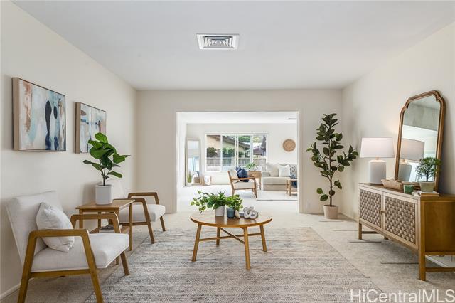 NEW PRICE! One of 3 valleys in Hawaii Kai, Kalama Valley, is tucked away from the busy Hawaii Kai hub and is just minutes from Oahu's famous "Sandy's Beach. Located half way up the valley this home offers level streets, light road traffic, and many upgrades tucked into the SINGLE LEVEL home. Large living, dining and kitchen spaces, upgraded windows (vinyl and fiber glass)/sliding glass doors give way to valley breezes and ample sunlight, hardwood floors, custom designed kitchen to maximize space and vantage points throughout the home., central ac, solar water heater, 22 OWNED PV PANELS, car-charging station, new HECO meter box, dual bathroom renovations (tub and walk in), No popcorn ceilings, Hardie board siding and a low maintenance yard so you can spend all your time at the beach! PLEASE DO NOT WALK ON PROPERTY WITHOUT AND APPT. Hawaii Kai has it's own sewer system which is a separate fee, along with the Mariner's Village II (common areas) at approx. $105/yr. Staging furniture has been removed.