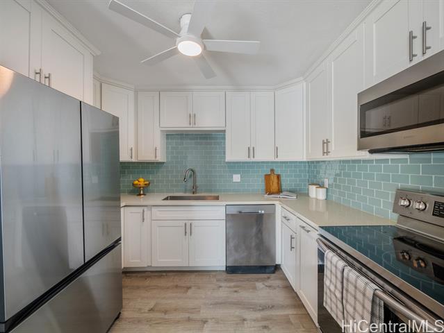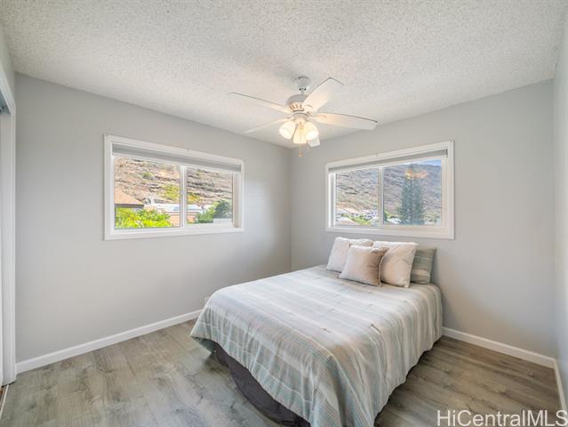 Welcome to this beautifully updated single-level 3-bedroom, 2-bath home in the desirable Kalama Valley neighborhood of Hawaii Kai. This modern residence features a spacious open floor plan with luxury vinyl plank flooring throughout and a fully renovated kitchen complete with quartz countertops, stainless steel appliances, and sleek cabinetry. Enjoy seamless indoor-outdoor living with a large fenced-in yard, lush grass, a private Trex deck perfect for entertaining, and a vinyl privacy fence for added comfort. The home also offers split A/C, updated bathrooms, and thoughtful finishes throughout. Ideally located just minutes away from renowned Sandy Beach, Koko Head Crater, Kalama Valley Park, and top-rated schools. With easy access to hiking trails, shopping, dining, and the convenience of Hawaii Kai. First Open House Sunday, October 19th, 2-5 pm.