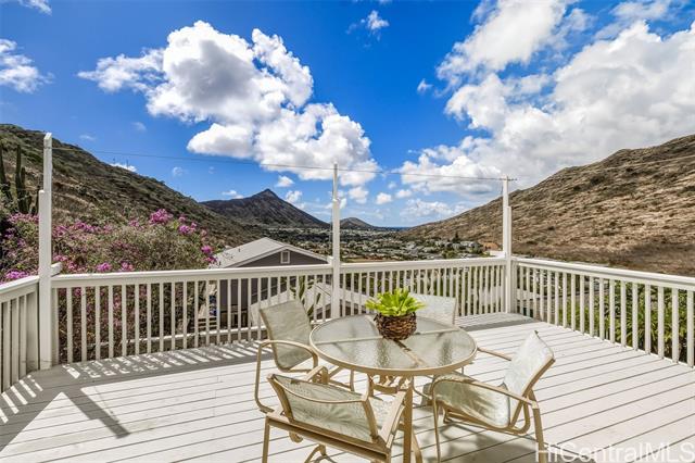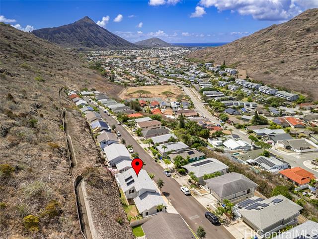 This well-maintained three-bedroom, two-bath home offers picturesque mountain and peek-a-boo ocean views! The home boasts several recent upgrades, including a new roof in 2024, a new deck and some new siding. The interior has just been painted & the exterior was painted in 2021. The home also features a two-car garage with a laundry room, both of which have also been recently painted and a solar water heating system. You will also enjoy views of Koko Crater and Koko Head. The location is excellent, being close to both Kamilo'iki Neighborhood & Community Parks, which offer a skate park, pickleball, tennis and basketball courts, roller rink, playgrounds, jungle gyms, and open fields. Additionally, it's conveniently located near beautiful beaches, shopping areas and hiking trails. Miloiki Street is no longer a private road. See supplements for Survey and additional documents. Being sold "As-Is". The property is easy to see. First open house: Sunday, October 26 from 2-5pm..