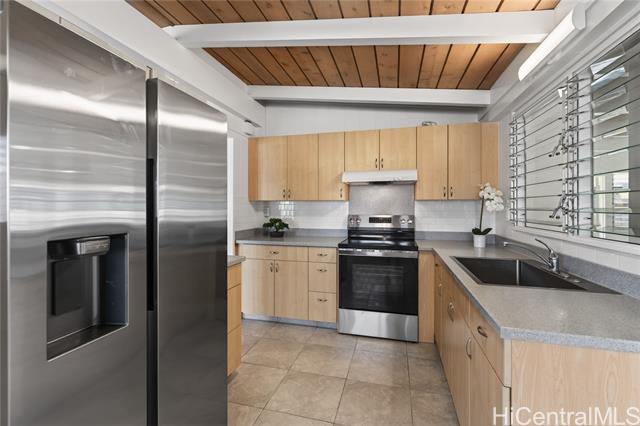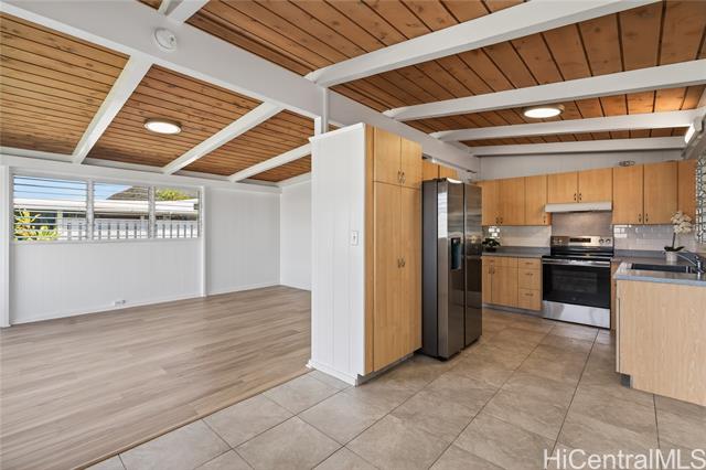 Welcome to this charming single-level home in the heart of Hawaii Kai. This move-in-ready residence features fresh paint inside and out, new luxury vinyl plank (LVP) flooring, a brand-new refrigerator, and a new range. The thoughtfully designed layout offers comfort and flexibility—perfect for everyday living and entertaining. A hallway vanity adds convenience, while the spacious family room provides versatile options for gatherings, a home office, or a play area, and includes an oversized storage room for added functionality. Located in a highly desirable neighborhood near Koko Marina, schools, parks, and shopping. This home delivers an ideal blend of comfort, convenience, and value. Square footage does not match tax office records. Covered lanai is unpermitted. Check Supplements for SRPDS and Survey.