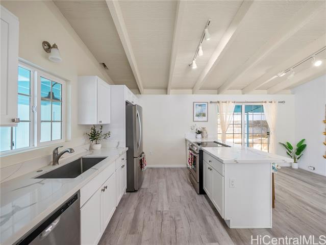 Welcome to 7223 Naohe Street in Hawaii Kai, a beautifully remodeled 4-bedroom, 2-bath single-family home located in the desirable Koko Head Terrace neighborhood. This single-level residence offers a bright, open floor plan with modern finishes throughout—ideal for comfortable island living. Enjoy a prime East Oahu location just minutes to Costco Hawaii Kai, top schools, parks, the Hawaii Kai Marina, and some of Oahu’s best sandy beaches. The updated interior includes dishwasher, stove, and two full-size refrigerators, offering extra flexibility for entertaining, meal prep, or multi-generational living. Spacious backyard with mature fruit trees, including Noni, creating a private tropical retreat perfect for relaxing, gardening, or hosting gatherings. Street parking, additional driveway space and a covered carport adds daily convenience, and the lot provides potential for outdoor living, expansion, or future customization. If you’re searching for a move-in ready home for sale in Hawaii Kai near beaches, shopping, and marina lifestyle, 7223 Naohe Street is a must-see opportunity in Koko Head Terrace, where homes rarely become available. One or more photos have been enhanced.