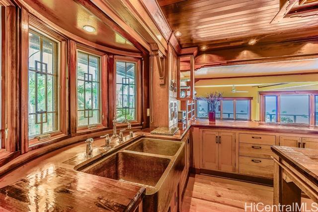 Beautiful Diamond Head, ocean and mountain views from spectacular custom-built home. Spacious living area and an open design kitchen with hardwood floors. Home has 4 bedrooms with 3.5 baths plus a home office area. Abundant closet storage and 3 lanai areas. Large downstairs suite with full bath, has its own sitting area and wet bar. Amenities include a 24hr monitored home alarm system, video security, outdoor courtyard, large pool, and entertaining area. Two car garage with storage and additional driveway parking available.