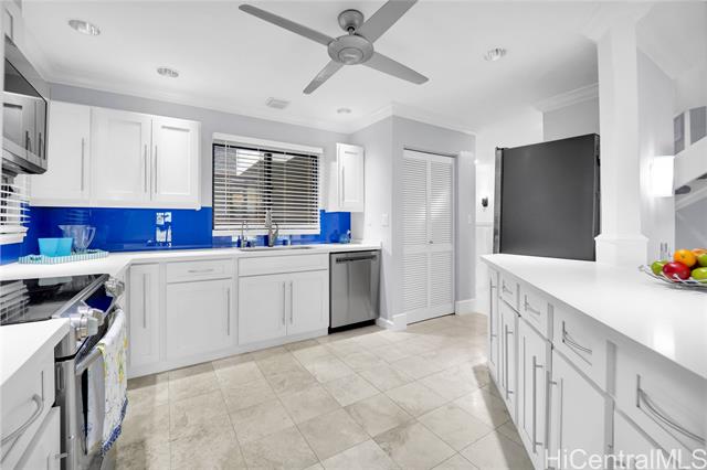 Views, views! Welcome to your Dream Home in Hawai'i Kai, a stunningly remodeled 4 bedroom, 2.5 bathroom, Single Family Residence situated on a quiet cul-de-sac. This property is one of only 3 in the Laulima subdivision to boast an unobstructed, panoramic ocean view-truly a rare find. As you enter, you'll be greeted by an open concept living space bathed in natural light, showcasing breathtaking views of the ocean & golf course. The chef inspired kitchen features stainless steel appliances, quartz countertops and abundant storage. Wake up in your primary suite & watch the waves roll in, the views are unobstructed here as well. Head into the en-suite bathroom and enjoy the spa inspired shower. The 4 bedrooms upstairs provide plenty of space for family or a home office. Special amenities include, Owned PV, Solar Hot Water and a Soft water system. Offered for the First time by the original owner, it's not just a house, it's a lifestyle. Experience coastal living, just steps to Sandy beach. With Costco, Safeway and restaurants nearby, you get the best of serenity & convenience. Don't miss this opportunity to own one of Hawai'i Kai's rarest gems. Schedule your private showing today!