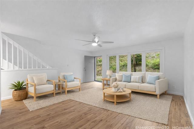 This townhome in Mariners Village III, offers a peaceful and relaxed lifestyle in beautiful Hawaii Kai. Wake up to gentle trade winds, gorgeous mountain views, and stunning sunrises in this inviting split-level 3-bedroom, 2.5-bath home. The recently upgraded kitchen features quartz countertops and stainless steel appliances, perfect for family meals and gatherings. Enter from your ground-level 2-car covered carport and head upstairs to the spacious main floor with an open-concept kitchen, bright living area, and a convenient half bath. Enjoy morning coffee or family dinners on the covered lanai overlooking lush surroundings. Upstairs, the primary suite includes its own lanai and full bath, while the two guest bedrooms share another lanai with mountain views—ideal for creating cozy family spaces. This pet-friendly community (buyer to verify) is close to Costco, Safeway, Koko Marina shops, local eateries, and 24 Hour Fitness. A wonderful community to call home.