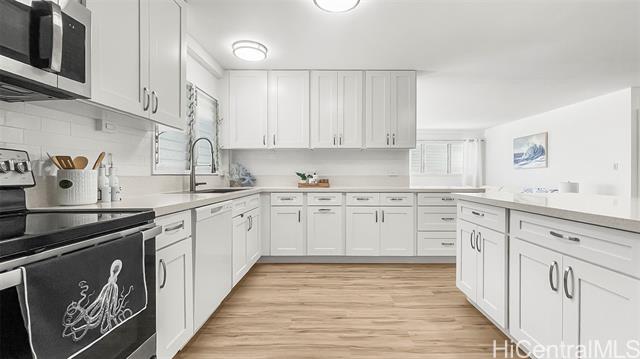 Offered at $1,925,000, this renovated 6-bedroom, 3.5-bath single-family home is located in highly desirable Mariner’s Valley in Hawai'i Kai, quietly positioned on a cul-de-sac. The spacious 3,344 sq ft residence sits on an expansive 18,597 sq ft lot and offers excellent flexibility for large or multi-generational living. Recent improvements include new flooring, fresh interior paint, kitchen with quartz countertops, peninsula seating, dishwasher, and split AC in main living areas. The main level features 4 bedrooms, 2 full baths, a half bath, and open living/dining spaces; the upper level adds 2 bedrooms and 1 full bath. Large, sloped yard offers potential for gardening, landscaping, or outdoor entertaining. Additional features include approx. 440 sq ft covered garage, extended driveway parking, and a 12-panel owned PV system with Tesla battery. Enjoy Koko Head views and proximity to shopping, dining, parks, beaches, and hiking