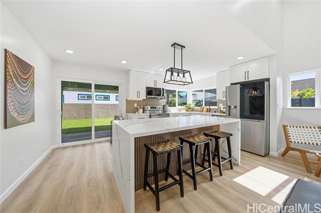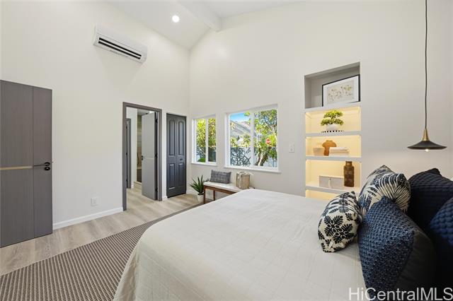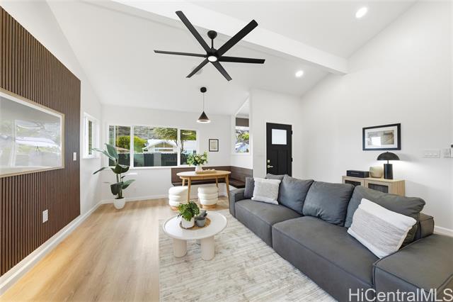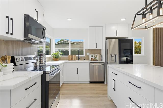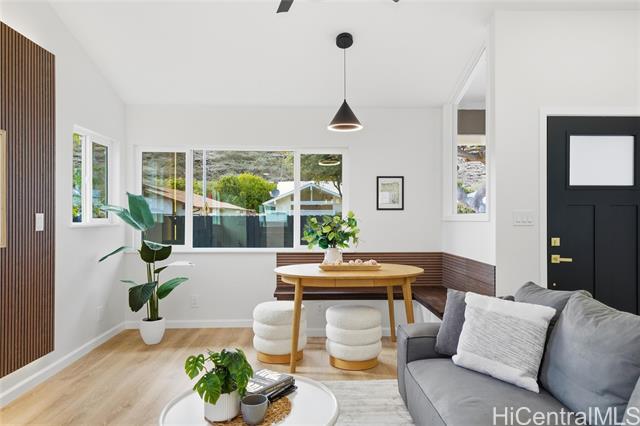 Striking from the very first glance, this beautifully renovated corner-lot home defines contemporary island luxury. Thoughtfully designed with resort-inspired finishes and elegant bespoke upgrades throughout, the home exudes both warmth and sophistication. Light-filled living spaces flow seamlessly, featuring a kitchen ideal for entertaining, spa-like bathrooms, and a primary suite that feels like a private sanctuary with built-in shelving and designer accent walls. This three-bedroom, two-bath residence sits on an oversized 5,700-square-foot corner lot with a spacious fenced yard and fruit trees. Enjoy breathtaking views of Mariners Valley, 18 owned PV panels to offset electricity costs, and a prime Hawaii Kai location near parks, beaches, dining, and shopping. Truly the epitome of island living.