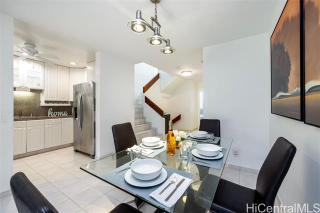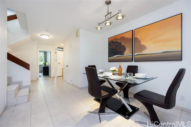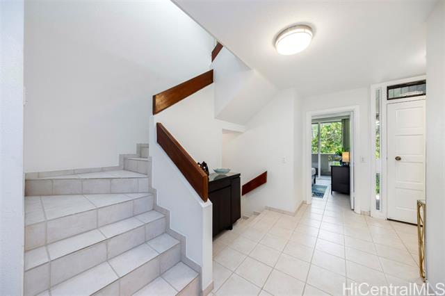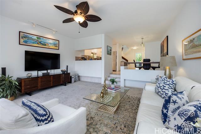 Experience refined island living at Napua Point #17, a spacious two-story townhome blending modern elegance with an inviting layout. Upon entering, a well-designed floor plan unfolds into the primary living space, which features a dedicated dining area and a spacious living room. The main living area extends outside to a private lanai shrouded in lush island landscaping, enjoying peek-a-boo ocean views. The adjacent kitchen offers a highly functional culinary space. Accommodations begin with a downstairs guest bedroom and half-bath, while upstairs reveals two large bedrooms, highlighted by an elegant primary suite featuring a walk-in closet, double-vanity ensuite, and partial Pacific Ocean views. Napua Point is a boutique oceanfront townhome of just 18 residences located along a quiet cul-de-sac in Hawaii Kai. Amenities include an extra-large swimming pool, a full-size tennis court, canoe storage, and rare sandy beach frontage. Located in Hawaii Kai near Kuliouou Beach Park, this residence is the ideal island retreat in a uniquely private setting.
