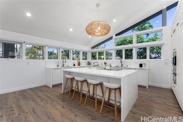 Discover the epitome of island living in this exquisitely remodeled and impeccably maintained 5 bedrooms/4 bath executive style residence in the highly sought-after Portlock neighborhood. Nestled on a nearly 13,000 sq. ft. LEVEL lot, this home boasts over 4,000 sq. ft. of elegantly detailed living space that seamlessly blends style and functionality. The newly renovated interior features a spacious open floor plan, updated baths and luxury vinyl plank flooring. At the heart of the home is a chef’s kitchen, complete with a large island and Miele appliances. The home is thoughtfully designed to be able to separate 1 bedroom/1 bath/living room with a wet bar and private entry as your ideal guest quarters. The generous lanai overlooks the expansive landscaped and enclosed backyard, perfect for indoor/outdoor entertainment. Plus, it’s just one lot away from a sandy beach, where you can indulge in sun-soaked days. Conveniently located near Koko Marina Shopping Center, Costco, and Hawaii Kai Shopping Center with a variety of shopping and restaurants. This exceptional residence is a must see!