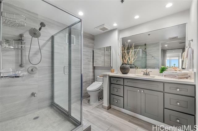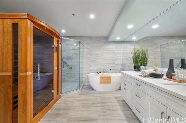 Elevated Island Living - Welcome to paradise and discover your own retreat in the marina-front community of Kalele Kai. This inviting 1,427 SF, 2-bedroom, 2-bath residence, located on the 5th floor of a 6-story building with 2-covd parking stalls, offers a comfortable place to call home with a spacious living and dining area. Thoughtfully designed with a spa-inspired primary bathroom featuring a private sauna, soaking tub, and Toto washlet bidet toilets, this home encourages rest and renewal. The generous 265 SF covered lanai extends your living space and creates a perfect setting for morning coffee or tea and evening sunsets where warm coral & amber tones stretch across the horizon above the ocean & marina, with Diamond Head silhouetted in the distance. Interior features include vinyl plank flooring, custom cabinetry & lighting, closet systems, stainless steel appliances, water filtration system & a dedicated laundry room. Kalele Kai offers 24/7 gated security, marina access, pool, BBQ area, clubhouse, on-site resident manager, car wash area. Tucked away and conveniently close to Safeway, CVS, Costco, City Mill, Hawaii Kai Towne Ctr, dining, beaches, hiking, & everyday essentials.