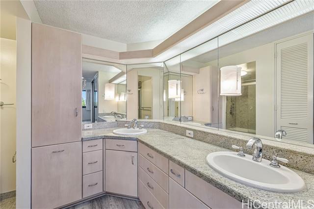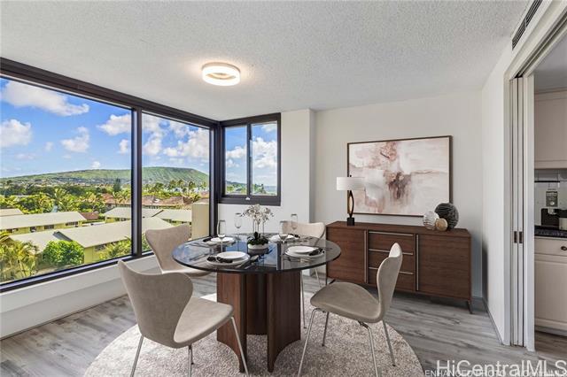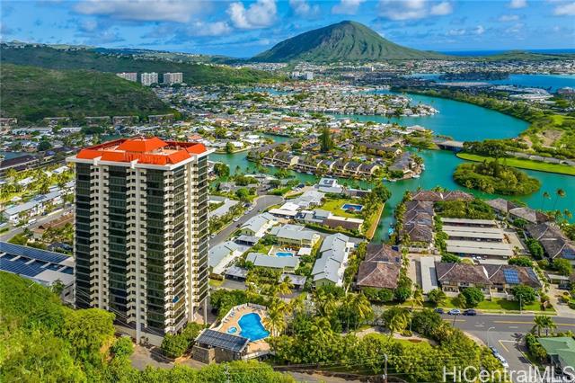 Best Value at Mt. Terrace. Now priced to sell! Welcome to your castle in the sky in Hawaii Kai, where luxury living meets breathtaking views! This stunning condo sits on the fourth floor and boasts panoramic views of Hawai'i Kai Marina, Maunalua Bay, Koko Head, and lush greenery that will take your breath away. Located in one of the most sought-after neighborhoods on the island of Oahu, this property offers the perfect blend of relaxation and convenience. As you step inside, you will be greeted by an open, spacious living area with floor-to-ceiling windows providing unobstructed views. The modern and stylish residence was tastefully remodeled in 2021. The unit also includes two generously sized bedrooms with two full baths, providing plenty of privacy and space for you and your family or guests, and two garage parking spaces. The Mt Terrace Condominium community is known for its topdrawer amenities and twenty-four-hour staff. Conveniently located in the heart of Hawaii Kai, this property is just minutes away from locally owned restaurants, shopping centers, and recreational options, including hiking, and boating.