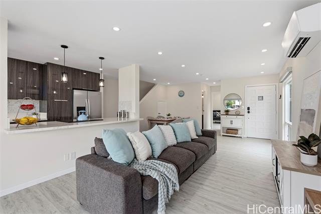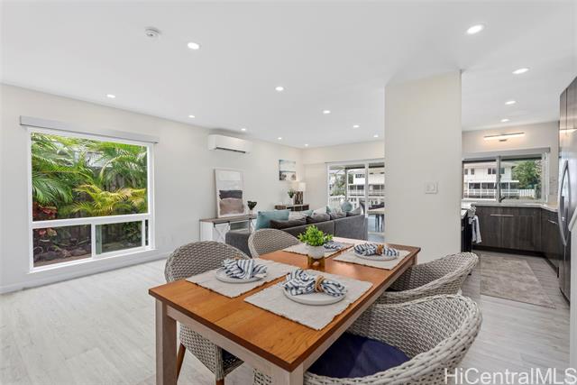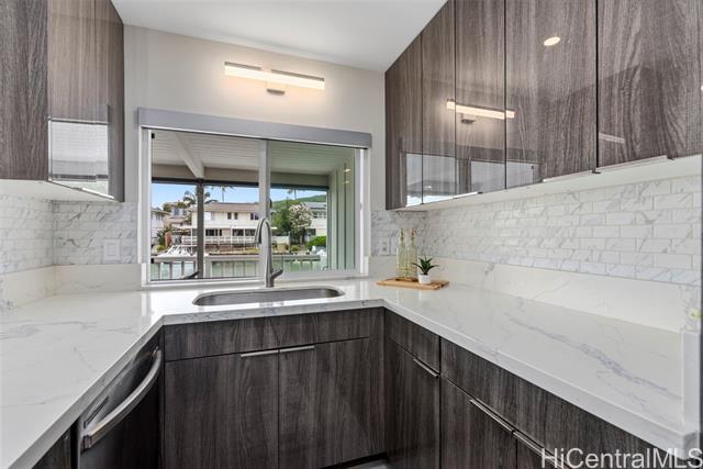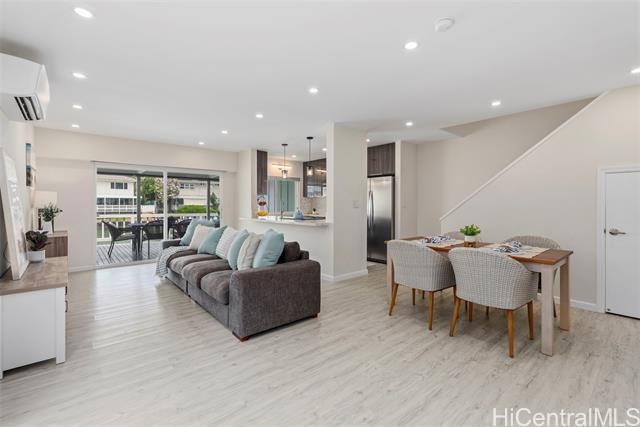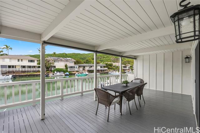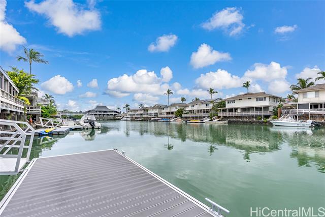NEW LISTING!! DIRECT MARINA FRONTAGE defines this exceptional townhome at Kuapa Isle, offering the ultimate Hawaii Kai lifestyle with water access from your own backyard. Exquisitely renovated with an open-concept design, this 4 bdrm/3 bath residence incl 1,557 sq. ft. of lvg space and features a bedroom and full bath on the main level. Recessed lighting flows throughout, complemented by a stylishly updated kitchen and bathrooms. An owned PV system with Net Metering and parking for 4 cars set this home apart within the community. Boating enthusiasts will appreciate the private aluminum dock (new in 2024) for effortless marina and ocean access. Enjoy resort-style amenities including a pool, clubhouse, basketball court, and more. Conveniently located near Costco, shopping, restaurants, and entertainment, this move-in ready home represents a rare opportunity in Kuapa Isle.