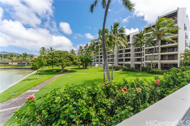 Fully remodeled unit in the highly desired Esplanade! Features an enclosed lanai for more useable interior space. The kitchen has been upgraded with African Mahogany cabinetry, granite countertops, and stainless-steel appliances. Flooring features new carpeting and travertine tile. Plantation shutter window treatments frame the stunning marina views and the Koolau mountains beyond from both the living room and primary bedroom. Ceilings have been beautifully smoothed, and the bathrooms remodeled. Includes two covered parking with an EV charger and 4 storage lockers! Resort-like amenities include boat slips, tennis courts, huge saltwater pool, fitness center, golf driving range bay with netting, putting greens, large private waterfront green spaces, koi pond, barbecue areas, recreation room, onsite management, 24/7 security, and more!