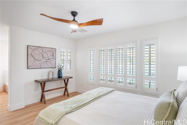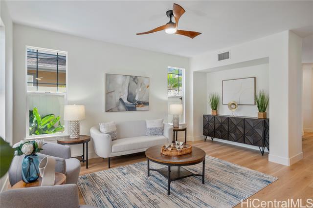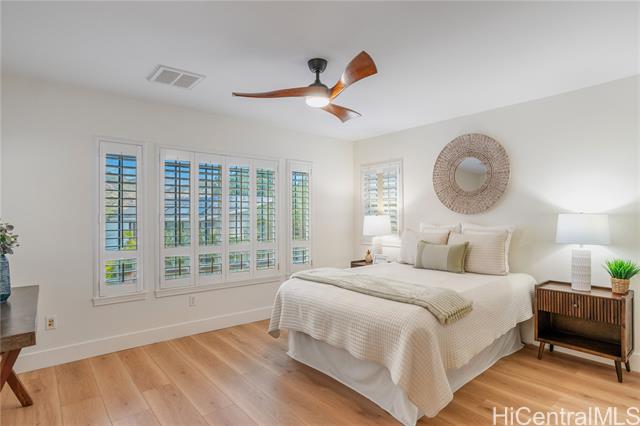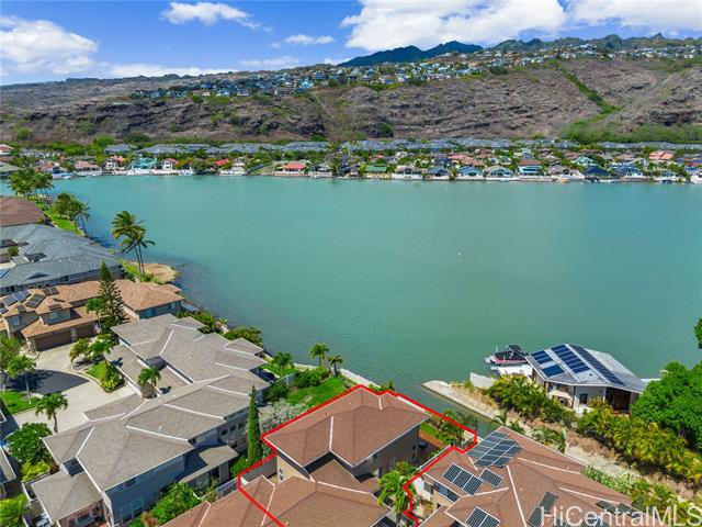 Rare Opportunity in The Cottages! Experience refined island living in the prestigious Hawaii Kai Peninsula community. This waterfront residence—attached only at the 2-car garage—features an expansive wraparound yard with serene marina views. This home features a two zone, central A/C system allowing you to cool upstairs or downstairs individually. 2025 renovations include new luxury vinyl plank flooring, fresh interior paint, modern recessed lighting, new toilets and faucets, stylish ceiling fans, and a beautiful Acacia wood deck tile system that transforms the backyard into a stunning outdoor retreat. The versatile layout offers 3 bedrooms and 2 baths upstairs, plus a downstairs flex room and a full bath—perfect for a 4th bedroom or office. The light-filled living and dining areas open seamlessly to the private yard, ideal for entertaining or relaxing. Enjoy resort-style amenities: pools, spa, fitness center, BBQ areas, walking paths, marina promenade, playgrounds, and 24-hour security. A true blend of comfort, style, and island luxury!