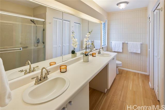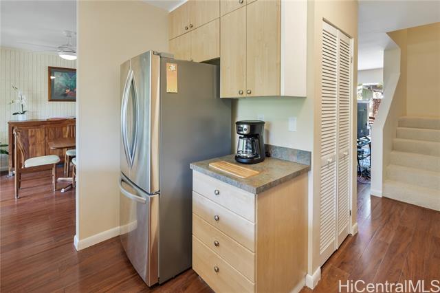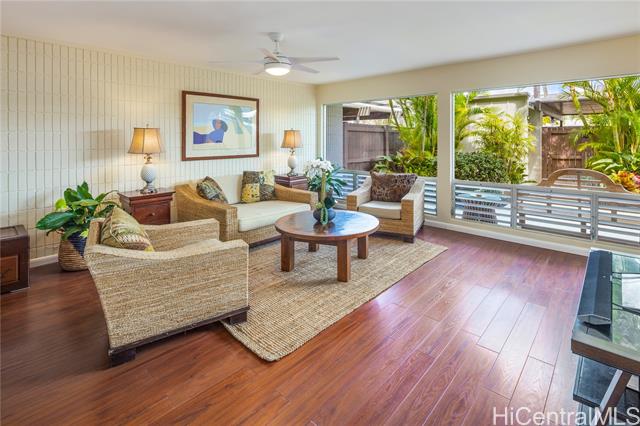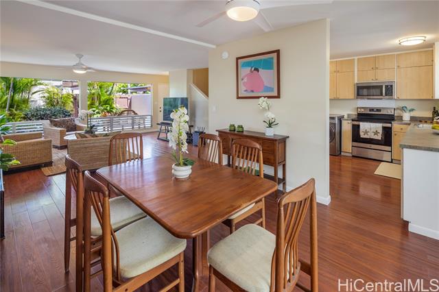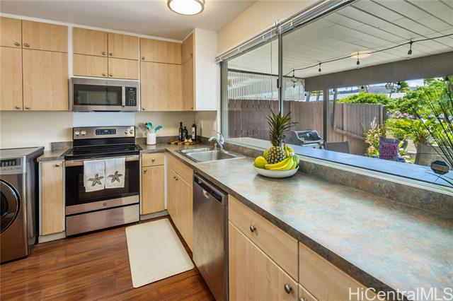 Don't miss this opportunity to live on Koko Isle-one of the most popular Marina Front developments in Hawaii Kai. This delightful 3 bedroom/2.5 bath interior unit with spacious covered lanai, backs onto a peaceful tree shaded park with walking path. An attached 2 car covered carport leads to the extra large front courtyard with storage closet, tropical landscaping and flagstone pavers. Large picture windows frame the inviting living room with natural light. The open style kitchen features a pass through window counter to the covered lanai and newly installed refrigerator and oven in 2024. $45,000 of recent upgrades include popcorn ceiling removal, all new interior paint, plush Berber carpeting upstairs, and new ceiling fans throughout. Spacious master bedroom suite includes walk in closet, updated shower and dual sinks. Private boat slip lease available through the Association. Koko Isle has a unique Resort-like feel as you drive onto your own palm tree graced island which includes a blue tiled pool, Club House, 2 parks, community boat dock w/ boat lift, gym, Manager's office and camera security. Open House Saturday 11/1 and Sunday 11/2 from 2-5PM.
