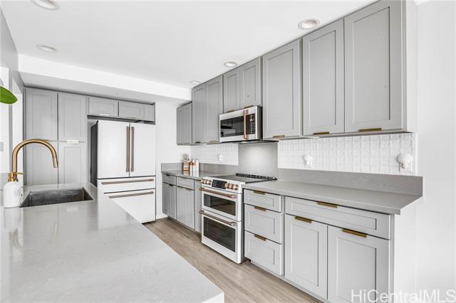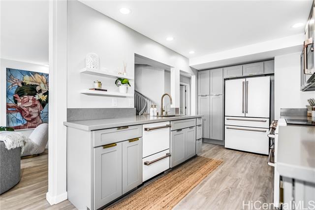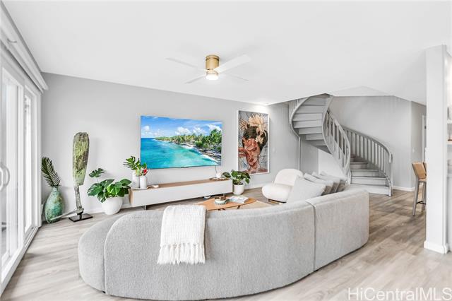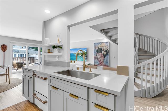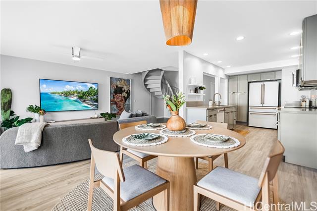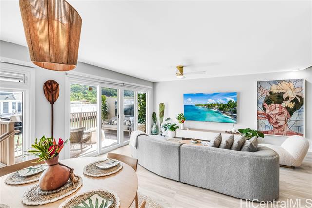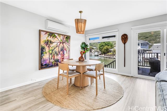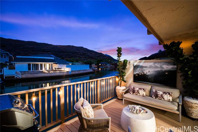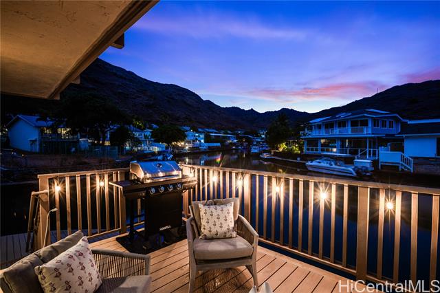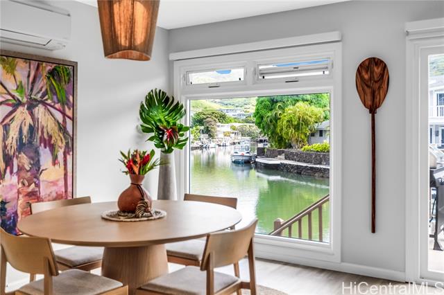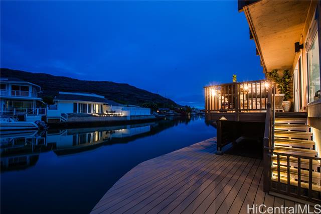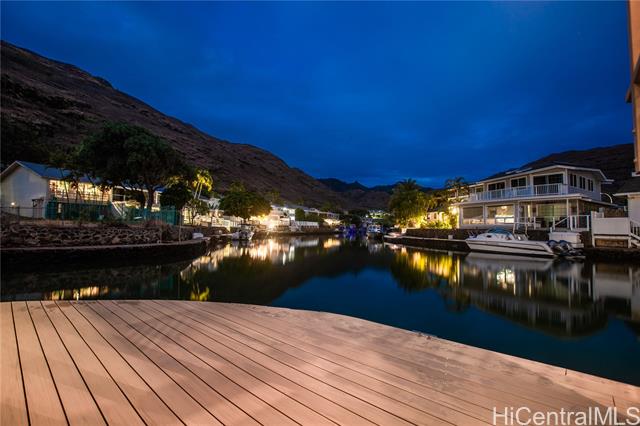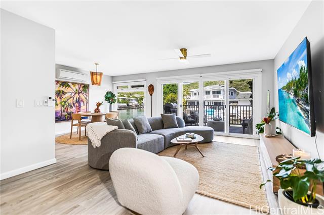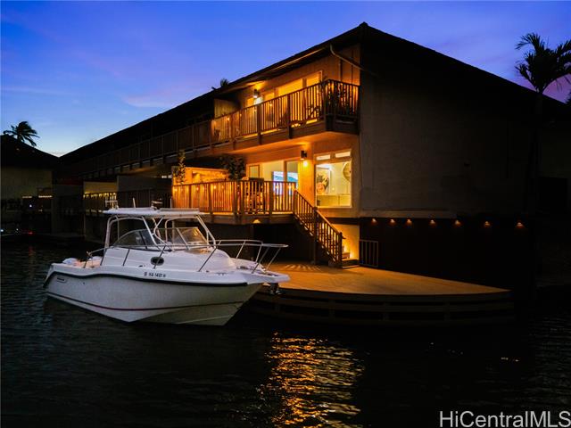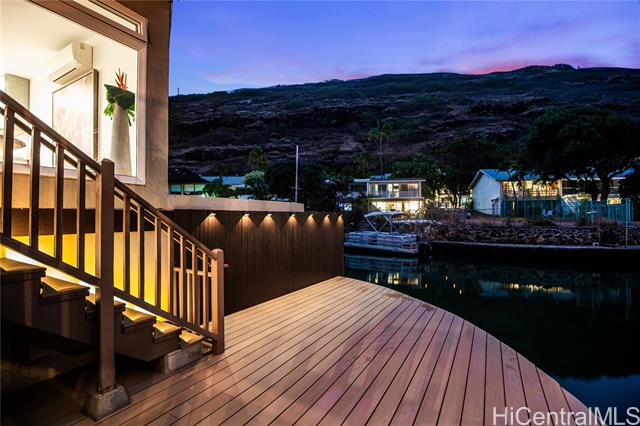 SPECTACULAR RARE MARINA-CORNER UNIT \ LUXURY WATERFRONT LIVING IN HAWAI‘I KAI! Newly remodeled 4BD/3BA corner-unit retreat with breathtaking marina and mountain views from nearly every room! Features top-of-the-line CAFE kitchen appliances, LG AI washer/dryer, designer finishes, motorized white-linen blinds, and five new premium split A/C systems. Enjoy luxury vinyl flooring, a stunning puka lava tile entry, a brand-new roof as of November, fresh paint, a private fenced area, sliding glass doors, and a fully floored and insulated large attic. Relax or entertain on matching wraparound Trex lanais, and enjoy a brand-new, expansive Trex dock — large enough for entertaining and perfect for boating, SUPs, and jet skis! Enjoy resort-style living with a poolside cabana perfect for relaxing and entertaining. Experience open, airy living with tranquil island vibes. Live the dream in your peaceful tropical oasis where the marina meets the Pacific Ocean—luxury, comfort, and serenity on the marina!