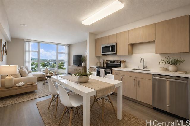 PRIME HAWAII KAI INVESTMENT \ Flexible Living Potential \ Unique Multi-Gen Layout Rare opportunity at Hale Ka Lae, unit 2602! Currently generating $4,950/month – one of Hawaii Kai's highest rentals in a condominium. This exceptional 2-bed + LARGE DEN features a UNIQUE FLOOR PLAN with flexible configuration options. Investment Highlights: 3 PARKING STALLS (listed separately) Flexible Floor Plan: Primary bedroom can convert to a separate living space. Unique dual-entrance layout with two mailboxes provides exceptional flexibility for multi-generational families seeking independent living arrangements or investors exploring maximum rental potential. Resort Amenities: Pool/spa, fitness center, movie theater, dog park, BBQ areas, concierge, club room Prime Location: Next to Costco, steps to Koko Marina shopping/dining, Hawaii Kai Golf Course, world-class beaches, Koko Head trails. Modern concrete construction, premium finishes, partial Marina views. Perfect for savvy investors or families seeking versatile living spaces with a resort lifestyle. Currently occupied, a 2-day notice is required. Unit is staged for marketing purposes. *Actual unit may differ in finishes and condition