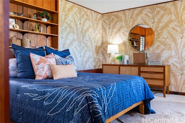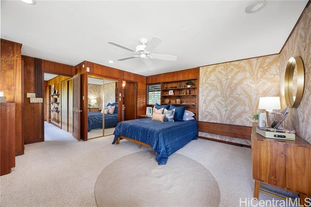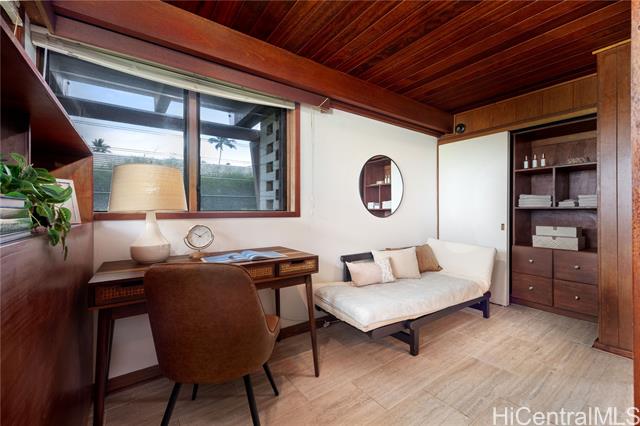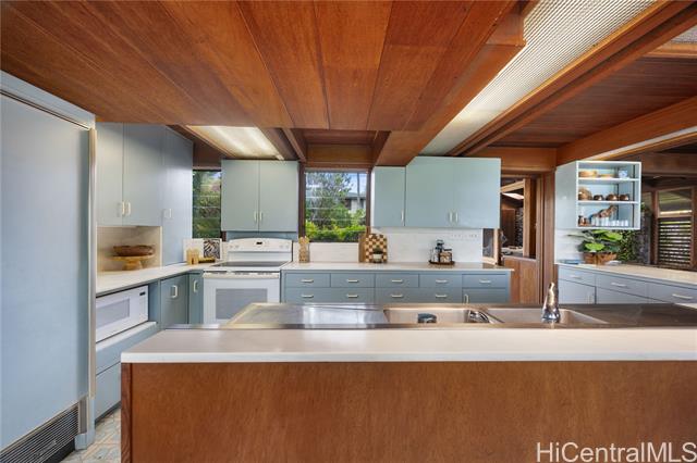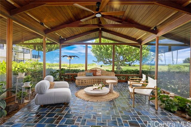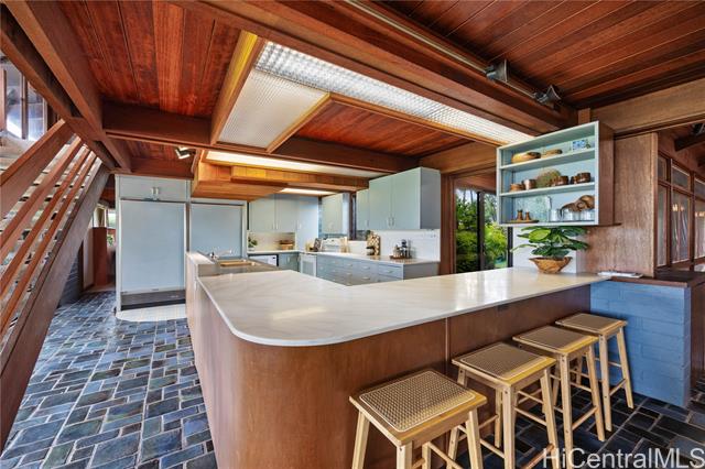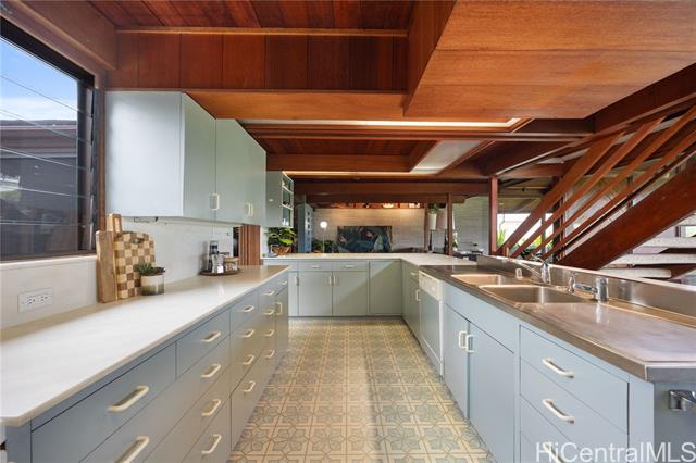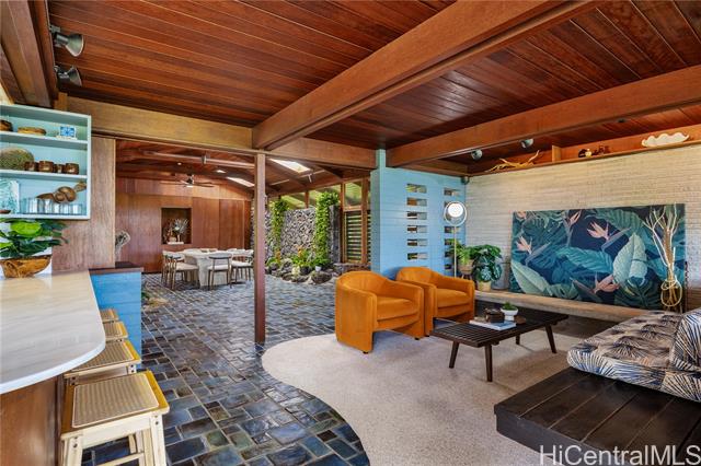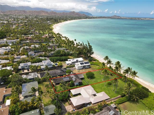Experience Iconic Beachside Living at 28 Pu‘ukani Place, Kailua. Nestled on a private road in one of Hawaii’s most coveted coastal communities, this mid-century modern two-story home offers the essence of beachside living. Set on over 20,000 sq ft of R-10 zoned land, the property features panoramic views of Kailua Bay and the Mokulua Islands — with breathtaking sunrises from your lanai. The oceanfront living room is bright and welcoming, with floor-to-ceiling windows showcasing turquoise waters and white sands. The open kitchen connects to a cozy sitting area and dining space, all enhanced by original oiled Philippine mahogany cabinetry. Architectural charm includes a lava rock accent wall and lush indoor greenery that brings the island feel indoors. Off the main level, a guest bedroom or library and full bath provide flexibility. Upstairs, the primary suite is a peaceful retreat, joined by a guest bedroom with a half bath. Both offer stunning ocean views — ideal for morning coffee or stargazing. Whether you're seeking serenity by the sea, mid-century elegance, or generous land in a prime location, 28 Pu‘ukani Place is calling for you. Buyers to conduct their own due diligence.