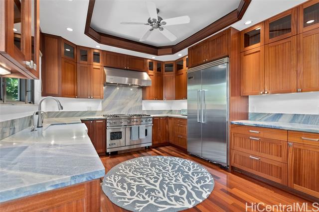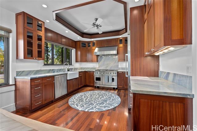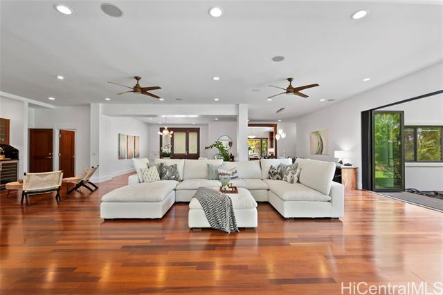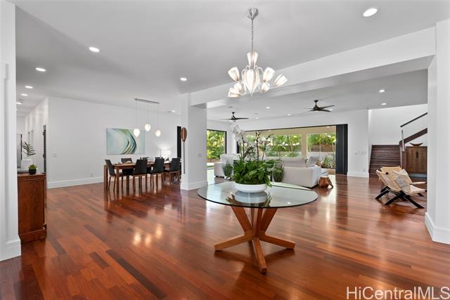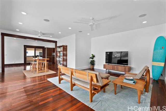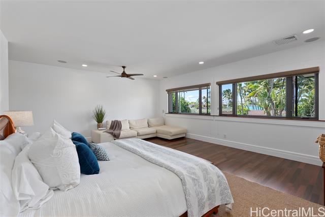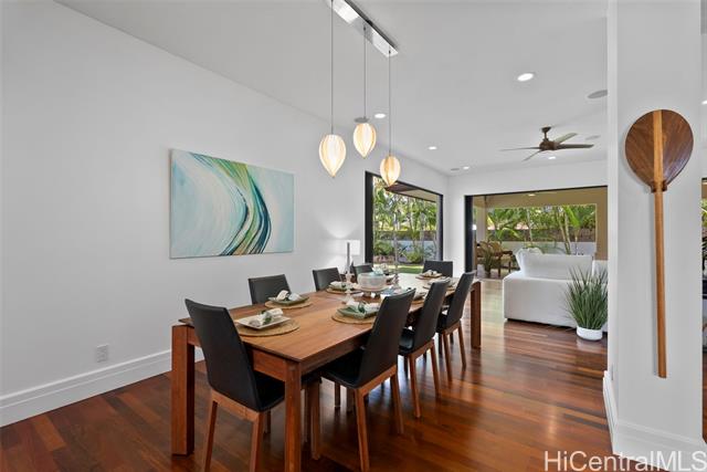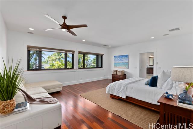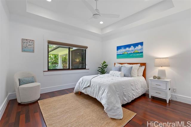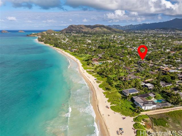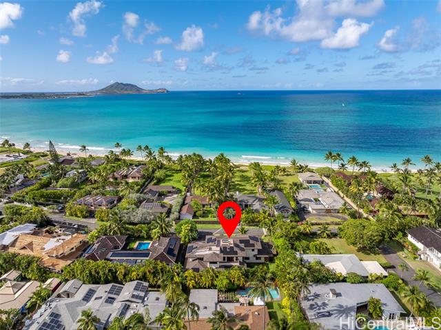 Exquisite Beachside home near the world-renowned Kailua Beach. Experience modern luxury in this exceptional, elegant home ideally located on a sought-after private street just one lot away from the white sand and ocean activities of Kailua Bay. Enjoy watching the vibrant blue colors of the sea from your rooftop deck and take advantage of a rejuvenating sauna session next to your serene koi pond - all part of the tranquil ambiance of the entire property. Features include an expansive layout with stunning primary suite boasting ocean views, large covered lanais perfect for gatherings, multiple dining areas, gourmet kitchen equipped with top-tier appliances, two stylish bars, a yard with ample space for play, newly-installed (2023) high-quality roof. You'll appreciate the added sustainable living features such as a top-tier solar PV system with fully-owned solar panels, battery storage, and an EV charging station in the garage. Accommodations include a spacious guest unit with separate entrance, offering privacy for visiting friends and family. With ample parking and a perfect blend of indoor & outdoor living spaces, this home is truly the dream Hawaii residence!