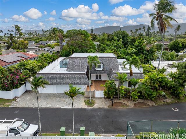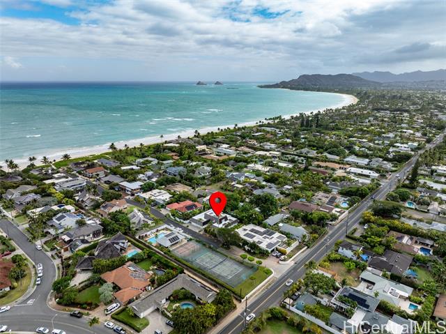 Enjoy the beachside lifestyle near world-famous Kailua Beach, just eight homes away – without the oceanfront premium. Set within the private 14-home Hale Kai Surf & Racquet Club, this expansive beachside estate offers 5 bedrooms, 4.5 baths and 3,958 interior sqft, providing a rare combination of privacy and generous living space, with a community private lane offering direct access to Kailua’s sandy beach. The main level features four bedrooms, three full baths, and a powder room, while the entire upper level is dedicated to a private primary suite with dual closets, a sunroom retreat, and access to rooftop spaces. An impressive courtyard entry leads to a grand foyer with soaring ceilings and multiple indoor-outdoor living areas designed for both entertaining and quiet enjoyment. Residents enjoy access to the community’s premier amenities, including pickleball, tennis, basketball, an upgraded pool, and clubhouse. A beautifully customized legacy home offering the dream beachside lifestyle with opportunity for personal touches. An exceptional opportunity not to be missed.