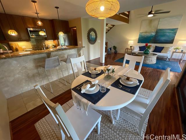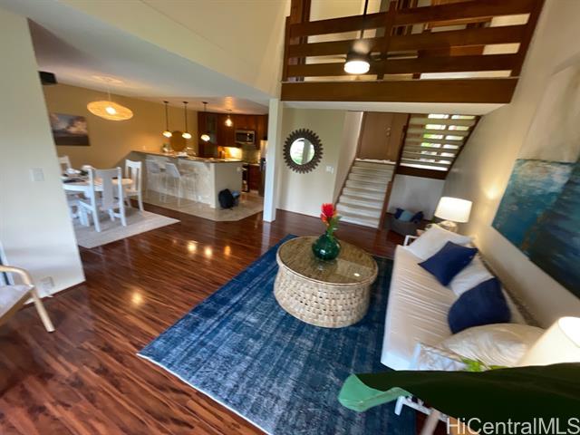 Enjoy sweeping, unobstructed views of the golf course, majestic mountains, and a hint of ocean from the highly desirable Lanikai side of Bluestone. This well-maintained residence offers a kitchen with granite countertops, a stylish bathroom, and thoughtfully designed vinyl windows that bring in natural light and enhance overall comfort. A skylight further elevates the interior, filling the space with brightness and creating a warm, open atmosphere. Ideally situated near beautiful beaches, shopping, and dining, this home delivers both convenience and the best of island living. A strong investment opportunity with excellent rental appeal in a highly sought-after community.