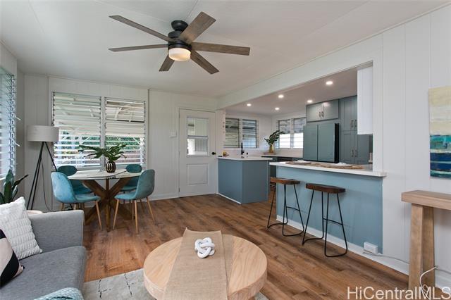 Charming remodeled move-in ready home at the end on a private lane located in Kailua! Take advantage of its prime location, just minutes from Kailua Beach, shops, restaurants, and more. Cool breezes flow through this single-level 2 bedroom, 2 bath home featuring a new kitchen with all new stainless steel appliances, cabinets and countertops. The extended attached carport has extra parking with large storage closets with hand-crafted doors and locks. The large fully fenced backyard is a perfect retreat to enjoy with your pets, friends and family. New LG Washer/Dryer and tankless water are powered by gas installed by Hawaii Gas in 2022 keeping electricity bills low. Bathrooms have been extensively remodeled with new showers, toilets, lighting and cabinetry. Other features are new luxury vinyl plank flooring throughout, fresh paint inside and out, refurbished window sills and new screens throughout. This is a must see don’t miss this opportunity!