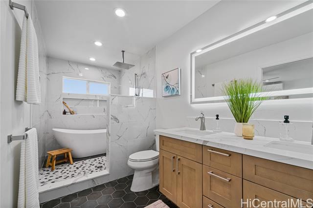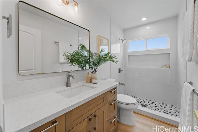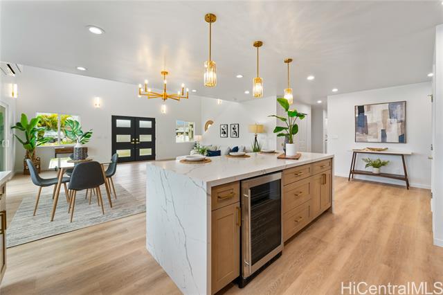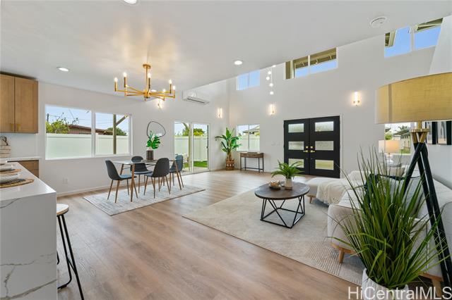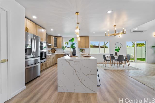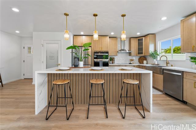 BRAND NEW CONSTRUCTION WITH ADU, a few blocks to Kalama Beach Park. Opportunity to live in a brand new home, high quality construction with lovely finishes throughout. This expansive floor plan offers many possibilities and is ideal for multi-generational living and rental income potential. This beautiful brand new build boasts a total of 6 beds/4 baths, a wetbar, 2 kitchens, 2 laundry facilities and 2 separate electric meters. Other features include shaker cabinets, quartz countertops, stainless steel appliances, wine fridge, pantry, split AC, LVP flooring, solar water heater, sprinkler system and 220 outlet for your electric car. Main living room with high ceiling and sliding door opens out to a trellis with yard where you can spend time with family and friends, great for barbeque and entertainment. Enclosed 3 car garage with extra parking. Minutes away to Target, Whole Foods, Buzz’s steak house, Kalapawai Market, schools, parks, golf course, eateries and shops. Easy access to H-3, Likelike & Pali Hwy.
