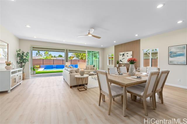 BRAND NEW CONSTRUCTION- Modern Luxury meets Island Living. Discover this stunning newly completed residence centrally located in Kailua. Thoughtfully designed with over 3,100 sq.ft. of living, this remarkable home blends sophisticated living with a relaxed Hawaiian lifestyle you've been dreaming of. The main residence features four spacious bedrooms and three full bathrooms on a single level with high ceilings. Hidden above, a legal 2 bedroom, 1 bathroom ADU provides endless possibilities for extended family or guests. Step inside to find premium finishes throughout: gleaming quartz countertops, contemporary cabinetry, and elegant travertine tile located in all four bathrooms. The heart of the home centers around an entertainer's kitchen equipped with professional luxury appliances ready to handle intimate dinners to huge holiday celebrations. But, the real magic happens when those expansive 20-foot sliding glass doors open, revealing a sparkling new pool which lies within a pristine lawn and landscaped private resort-style backyard. Moments from Kailua's legendary white sand beaches, charming local shops and restaurants, this property ticks all the boxes!