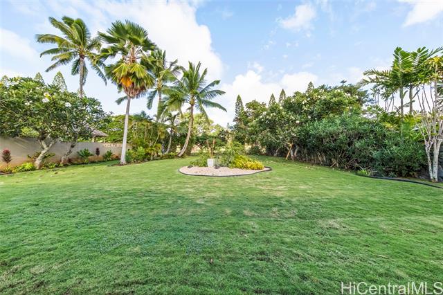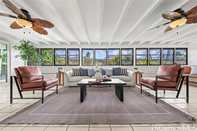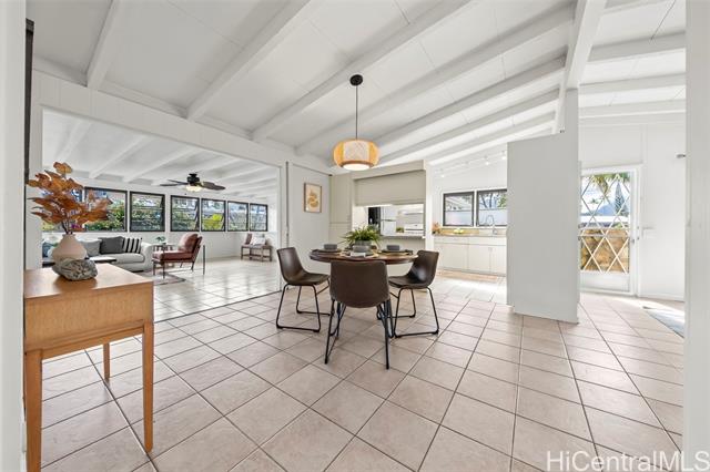 This single level home features a spacious open layout with tile flooring throughout, enhancing the bright and airy atmosphere. The oversized family room is perfect for entertaining, with sliding glass doors that open directly to the lush backyard. Enjoy the serene beauty of coconut and plumeria trees, along with a covered lanai, ideal for dining al fresco or relaxing in the cool island breeze. The primary suite includes a built-in desk, a private door leading to the rear yard and a tranquil space to unwind. All three bedrooms are equipped with split A/C units. For ultimate comfort. This home truly embodies the essence of island living, offering a desirable location at the end of street cul- de -sac in Kailua.