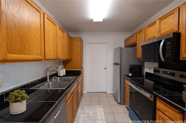 Welcome to your newly renovated home in Kailua Bluffs. You will conveniently enter this 3 bedroom and 1 1/2 home to the galley style kitchen from your enclosed garage. Some homeowners have converted their garage into a bedroom for more family space. All Kitchen Appliances are brand new and waiting for you. This home has been rejuvenated with fresh paint throughout as well as brand new flooring. PV has been fully paid for and will save on electricity. Preservation land into a forest landscape borders this home to be enjoyed from your private lanai. Come and tour this home and then enjoy the nearby sugary beaches and brilliant colors of the ocean in Kailua and Waimanalo.