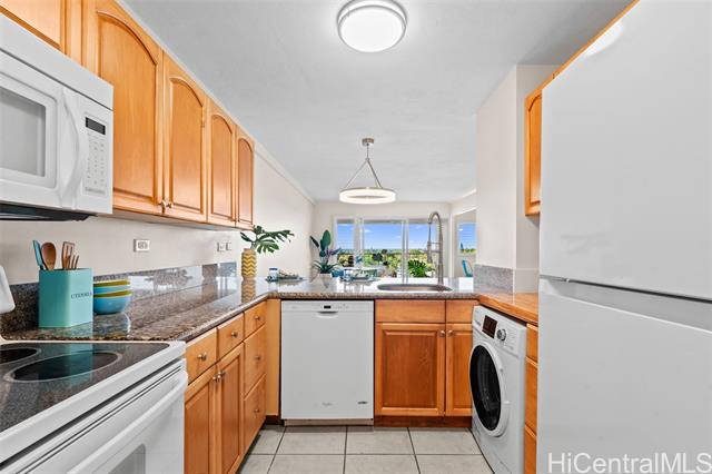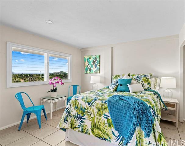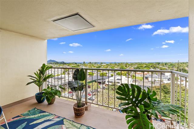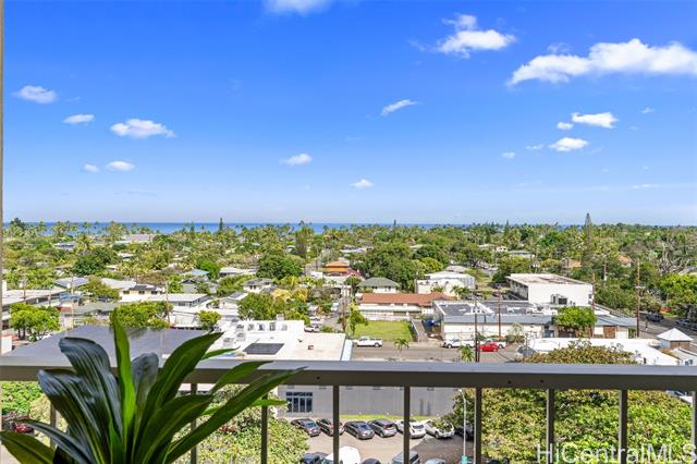 Discover a premier opportunity to own one of the few condos in Kailua Town offering true 180-degree OCEAN VISTAS. This freshly painted unit features modern light fixtures, cool tile floors and an unbeatable location close to world-famous Kailua Beach The vibrant shops and restaurants of downtown Kailua are right out your door. Enjoy unmatched convenience with Kailua District Park—featuring tennis, pickleball, a skate park and an Olympic-sized pool—only one block away. Within the building, you'll find a welcoming community complete with a lush herb garden, saltwater pool, and a covered area for social gatherings on the recreation deck. Includes a premium parking spot located directly next to the elevator for effortless access and in the gated garage you'll find bike and surfboard storage for your convenience. OPEN HOUSE Sunday Feb. 1, 2:00-5:00