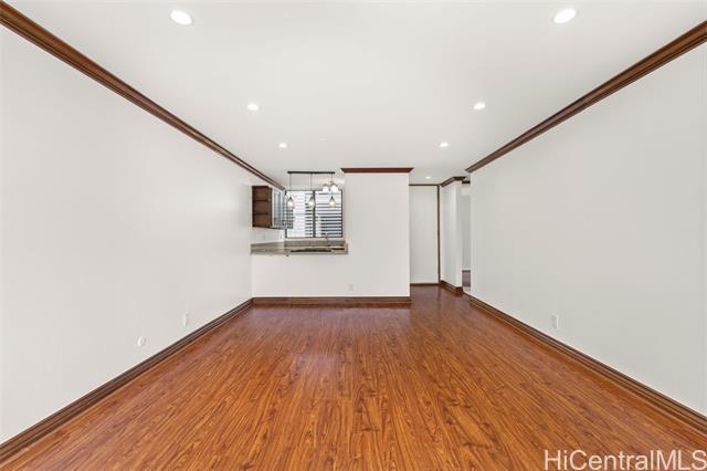 Welcome to this rarely available residence in Gardenia Manor in the heart of desirable Kailua! This 2 bedroom, 2 bath, 2 side-by-side covered parking is located in a private location in the complex. Features include newly painted throughout, beautiful wood crown moulding and baseboards, closet systems, security screen front door, granite kitchen counters, travertine bathrooms, and newer appliances. New luxury vinyl flooring just installed in the primary bedroom, laminate wood flooring in living room and second bedroom with ceramic tile in kitchen. The lanai is private and perfect for dining and relaxing. Wonderful amenities include plenty of guest parking for visitors, lovely gardens, pool, BBQ grill, car wash area, storage, and pet friendly! This prime location in Kailua is close to famous Kailua beaches, Whole Foods, Target, restaurant, boutiques, grocery stores and nearby parks. Don't miss this opportunity to call Kailua home!