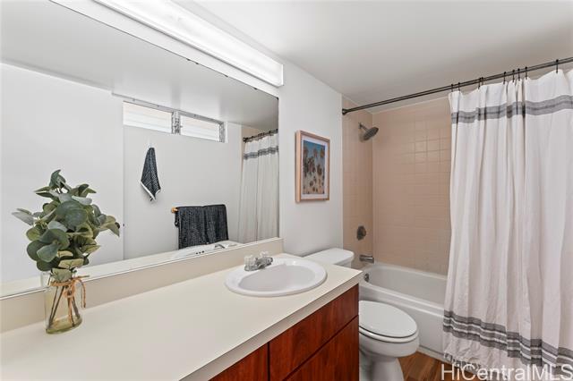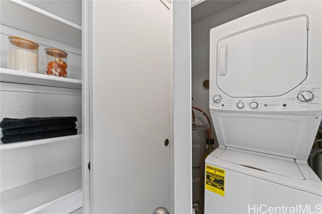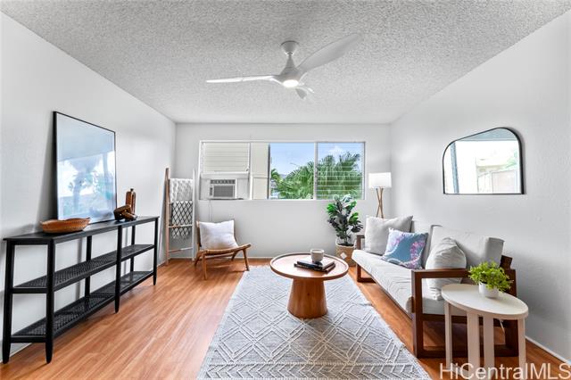 Rarely available one-bedroom condo in Koolau Vista, ready and waiting for its new owner. This well-maintained unit features vinyl flooring throughout, a washer and dryer conveniently located in the unit, and a window A/C in the living room for added comfort. The bright and functional layout offers an easy, low-maintenance lifestyle. The condo also includes one covered parking stall and a dedicated storage unit, adding valuable convenience. Centrally located within the community, this is a wonderful opportunity for a first-time buyer, investor, or anyone looking to make this inviting space their own.