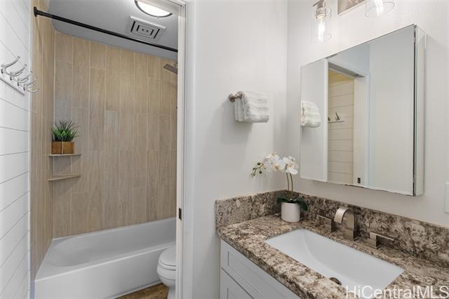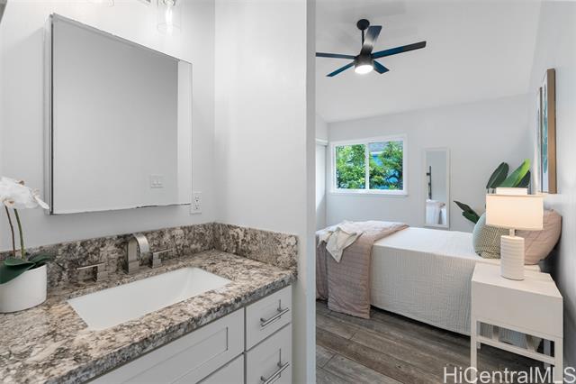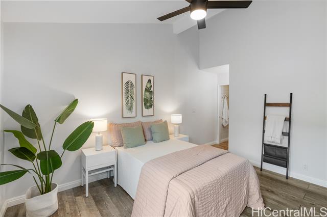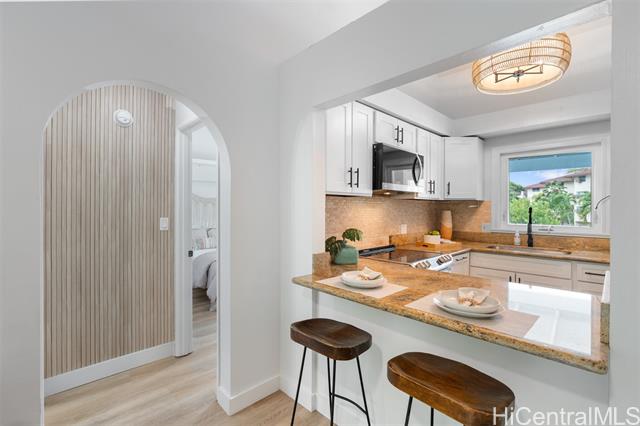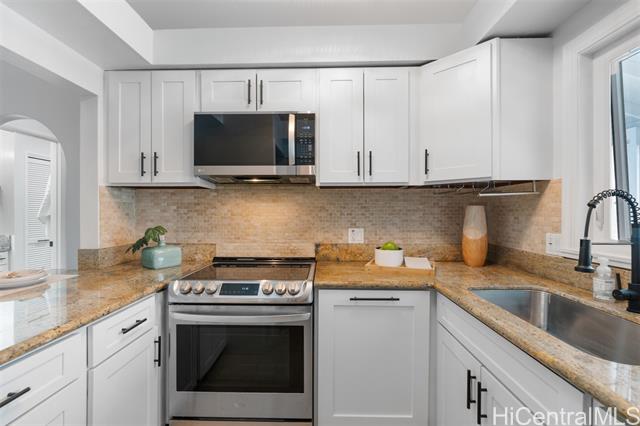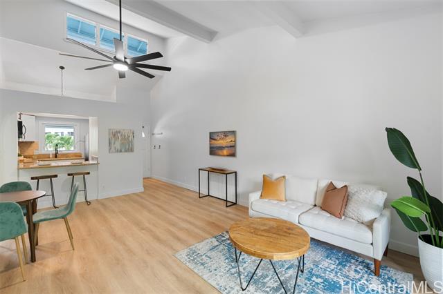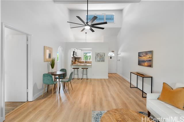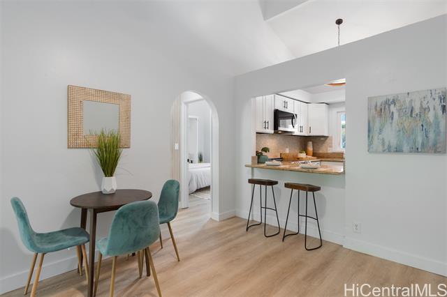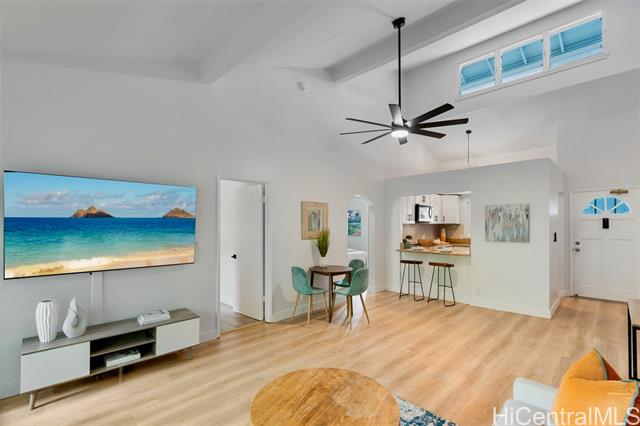 Your Upgraded Kailua Retreat Awaits! Live the Kailua lifestyle in this beautifully upgraded 2-bedroom, 2-bath home, just minutes from world-famous beaches and the vibrant heart of Kailua Town. Soaring vaulted ceilings and abundant natural light create an open, airy feel, while luxury vinyl plank floors and sleek granite countertops bring modern elegance throughout. The covered lanai is the perfect size for sitting and sipping coffee, wine or your favorite cocktail! A clever built-in Murphy bed offers flexible living, perfect for guests, a home office, or extra space to stretch out. Enjoy the convenience of TWO DEDICATED PARKING STALLS, a rare find in this sought-after location. Whether you’re entertaining friends or heading out to the beach, this home is designed for effortless island living. Conveniently located to boutique shops, dining at your favorite eateries, or catching the sunset on soft sandy beaches—this Kailua retreat puts it all within easy reach. Bright, modern, and flexible, this is truly a place to call home!