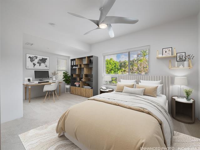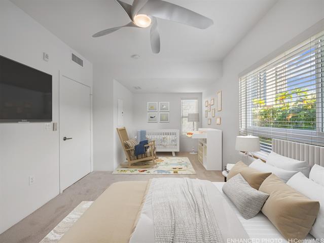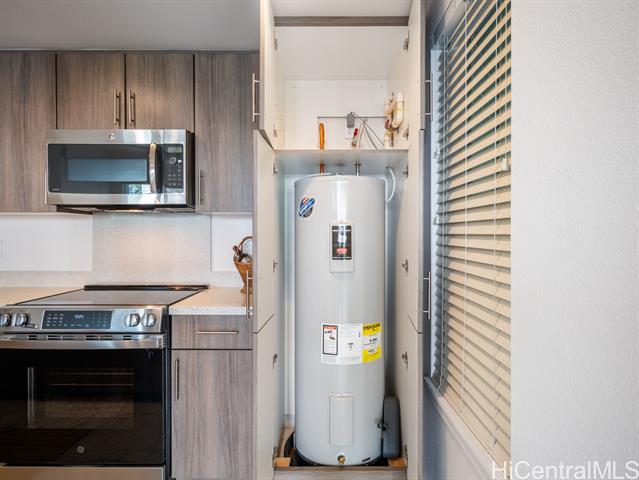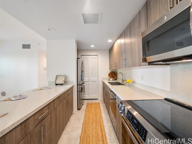 Aloha and Welcome Home to this pretty Jewel Box of Ka Malanai at Kailua on the Windward side of Oahu. This special 1 bedroom / 1 bath / 2 parking unit has been freshly painted and upgraded with new appliances and new custom living room slatted blinds. The carpeting in the bedroom with nook and walk-in closet are brand new as well. The extra parking spot is a highly valued perk. Spot # 74 is covered and located at the bottom of the exit stairs. Spot # 82 is uncovered and near the surfboard storage area and the "back door" entrance to Target. The treats that make Kailua Town so special are all nearby. The Kailua Rec Center & Pool is across the baseball field and the magic of World Famous Kailua Beach is a bike ride away. Photos are virtually staged. This unit was previously a rental bringing in $3,000/mo. Maintenance fees are very low at $549/mo. Come explore the secrets of this special location. Do call listor for private showings or visit our Sunday Open Houses from 2-5 p.m. This is the only one-bedroom available; do not wait!!!