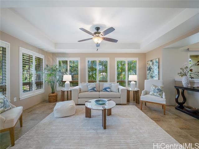 Experience the best of island living in this stunning 3 bedroom, 2 bath luxury condo in the heart of Kailua. This highly sought after Ka Malanai community offers the perfect blend of comfort and convenience. The single-level residence features a large, open-concept kitchen with stainless steel appliances, spacious interiors with tile flooring, and brand-new carpet in the bedrooms. Elegant plantation shutters and central AC provide both style and comfort, while the main bedroom boasts a generous walk-in closet. Enjoy peaceful tree-top views throughout and courtyard views from two private lanai, perfect for relaxing outdoors. Ideally situated just steps from Kailua Town, this condo offers a walkable lifestyle with access to boutique shops, dining, cafés, and farmers markets. Whole Foods, yoga studios, and popular spots like Buzz’s Steakhouse & Kalapawai Market are nearby. Best of all, you’re within walking distance to Kailua Beach, known for its turquoise waters, soft sand, and excellent conditions for kayaking and paddle-boarding. As the closest building in Ka Malanai to Kailua Town, this condo is a rare opportunity to enjoy luxury living in one of Oahu’s most desirable communities!