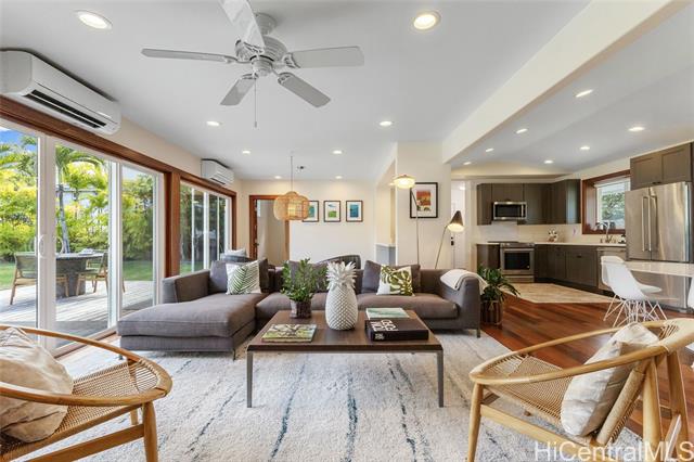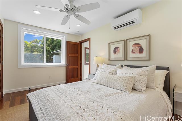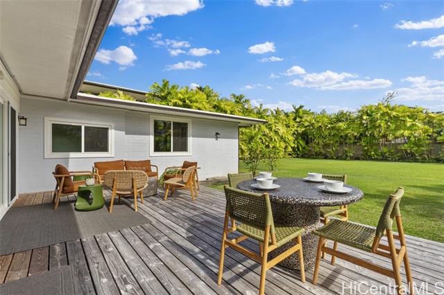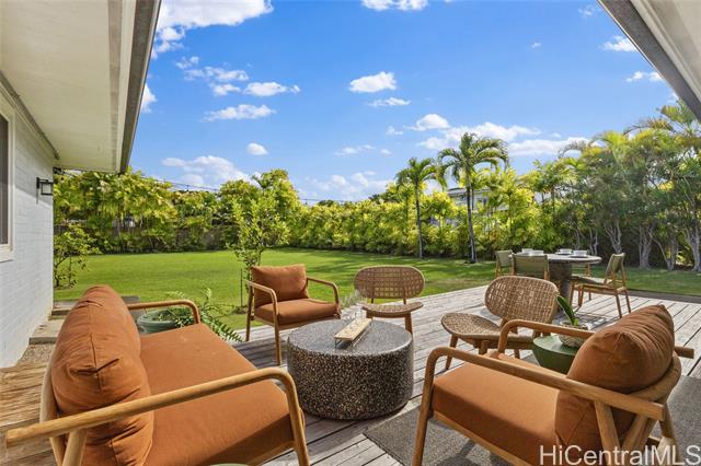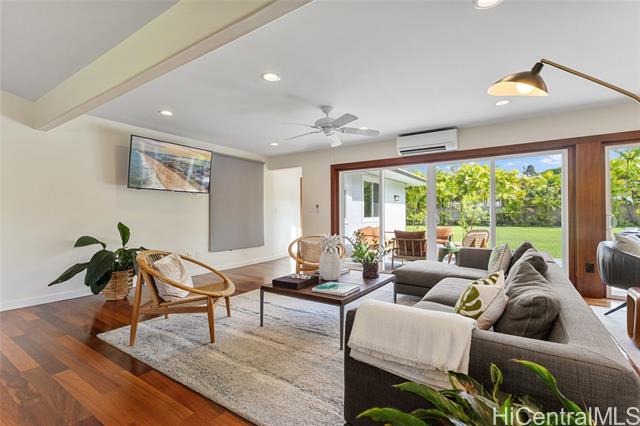 Experience the best of both worlds with this exceptional property, offering a sprawling yard and quick access to the beach. This home has been elegantly upgraded with premium materials, and you'll stay comfortable year-round with the outstanding split AC systems throughout. Featuring 5 bedrooms and 3 full bathrooms, this residence provides an ideal blend of ample living and outdoor space, set on a generous 12,716 sq ft lot. Enjoy the vast expanse of lush, flat green grass, perfect for play, alongside an outdoor open lanai for entertaining friends and family. Plus, delight in picking fresh citrus for your beverages from the yard's fruit trees. Just a short walk to the stunning Kailua Beach, this incredible home makes sunrise views, swimming, kiteboarding, surfing, and paddling effortlessly accessible!