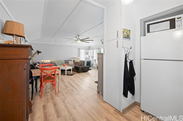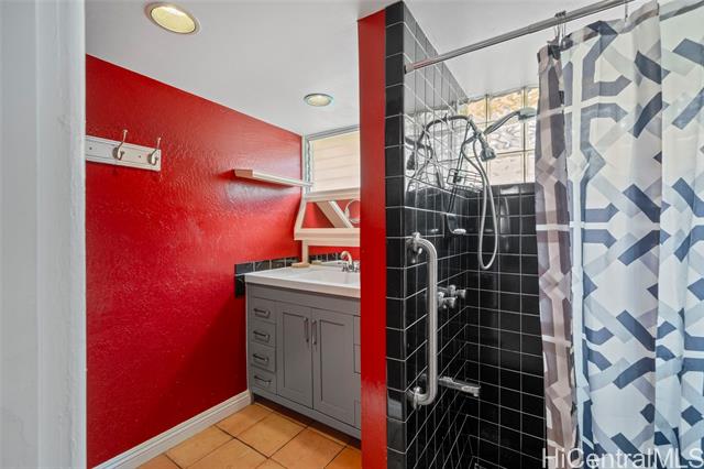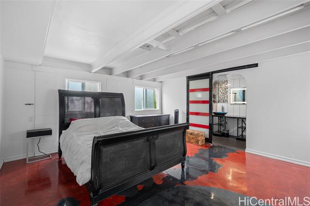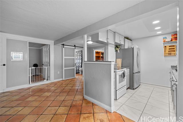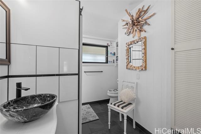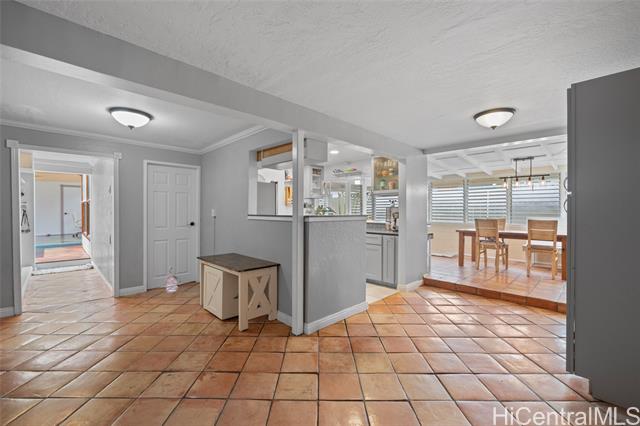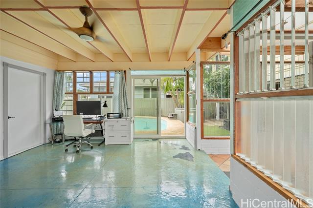 Welcome to this unique Kalama Tract home located less than two blocks from the beach and minutes from Kailua Town. This vibrant property features a distinctive floor plan, bold colors, and artistic design elements, offering a rare opportunity for buyers seeking a home with character and creative flair. The flexible layout allows for customization and inspired living. The main level includes three bedrooms, two bathrooms, a dedicated office/den/family room, and a separate laundry room with a Smart UltraFast electric washer/dryer combo with ventless heat pump technology. An upstairs one-bedroom, one-bath unit with a kitchenette provides flexibility for guests or extended family. Outdoor features include a saltwater pool and a hot tub. Energy-efficient upgrades include nine PV panels with Tesla Powerwall, ABS solar pool heating, tankless hot water for the primary suite, propane hot water for the main house, and a 220V EV charging service. This beach-close home offers an optional membership to Kalama Beach Club (potential eligibility), character, flexibility, and a truly special Kailua lifestyle.