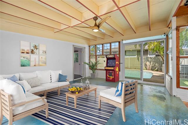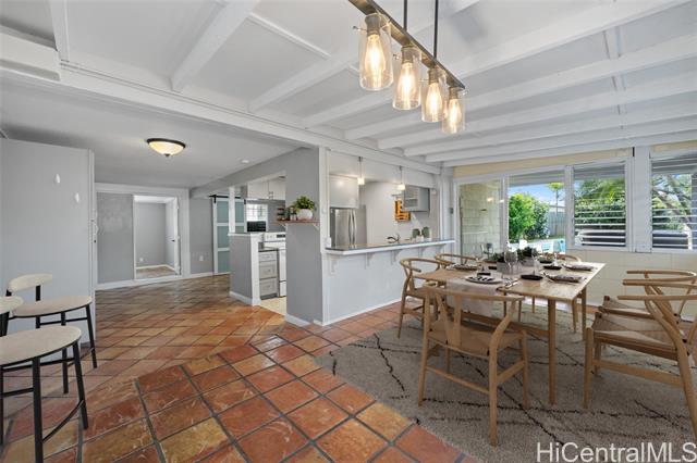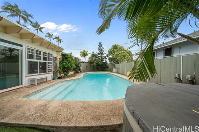 VA ASSUMABLE LOAN at 2.75% available for qualified buyers. Beach-close Kalama Tract home located less than two blocks from the beach and minutes to Kailua Town. This unique property showcases bold colors, artistic design elements, and a distinctive floor plan, offering a home with character and creative flair.Must see! The flexible layout features 2 bedrooms and 1 bath on the main level, plus a separate upstairs 1-bedroom, 1-bath unit with a kitchenette, for guests or extended living. Two flex spaces on the main level for an extra bedroom, office, and/or family room, along with a separate laundry area. Outdoor features include a pool and jacuzzi, perfect for enjoying Kailua’s relaxed lifestyle. Energy-efficient upgrades include PV panels with Tesla Powerwall, solar pool heating, and a 220V EV charging service. Approved plans and open permit already in place to build up and expand, offering a rare opportunity to add value while saving significant time and costs in the permitting process. Possible eligibility for Kalama Beach Club membership. A great opportunity to own a property with flexibility and future potential in one of Kailua’s most desirable neighborhoods. Enhanced Photos.