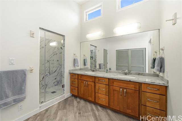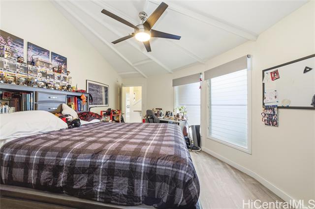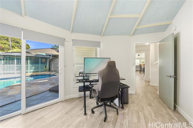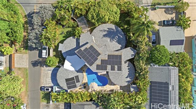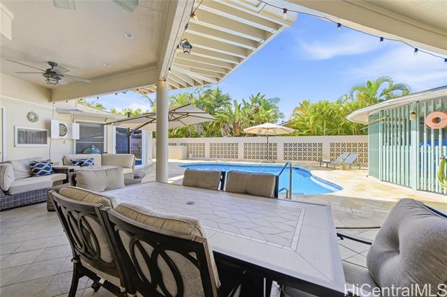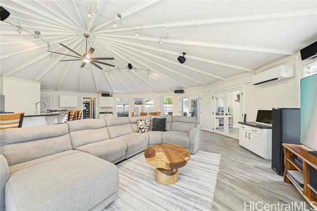 Island Living at its best — Just One Block from Kailua Beach on the corner of Palapu Street. Step into this one-of-a-kind 4-bedroom, 3.5-bath contemporary island home featuring vaulted ceilings and 2,936 sq.ft. of bright, open living space, all enclosed on a 10,000 sq.ft. lot. Relax or entertain around your solar-heated pool with both covered and open lanais—perfect for seamless indoor/outdoor living. This property includes a 3-bedroom, 2.5 bath main home, with most living areas on the main level. The private upstairs primary suite offers a peaceful, ensuite retreat away from the main living spaces. In addition, there is an attached 1-bedroom, 1 bath with a kitchen that can be used as a rental or mother-in-law suite. Move-in ready with 30 owned PV panels (NET metering), split ACs in every room, luxury vinyl plank flooring, an upgraded kitchen, motorized blinds, updated lighting, and more. Additional highlights include two laundry areas, an attached workshop/storage room, a garage, and extra parking. Located in highly sought-after Kailua, close to dining, shopping, and endless watersports—this home delivers comfort, flexibility, and modern island style. Your Kailua oasis awaits!