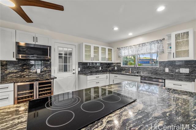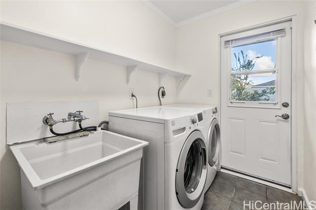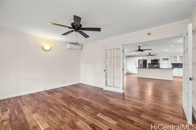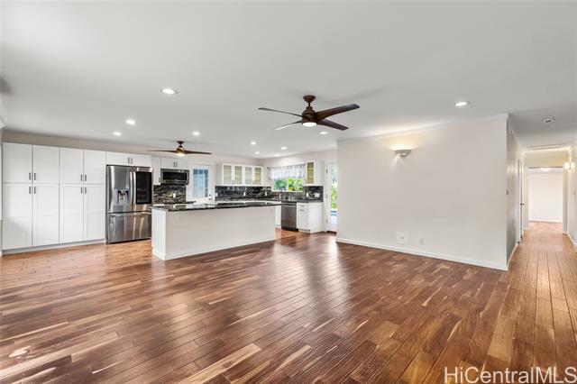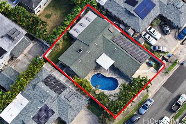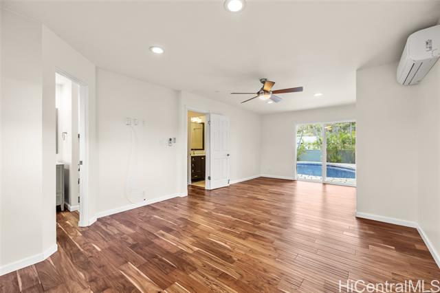 Discover this beautiful home located in the highly sought-after Kaopa neighborhood of Kailua! After a long day, unwind by the inviting saltwater pool. This residence features 3 bedrooms and 2 bathrooms, with an open-concept kitchen and living room. There is also a family room that leads to the back lanai. The laundry area is equipped with a sink, washer, and dryer, all located in a dedicated interior space. The garage offers generous storage closets. Additionally, the home includes split air-conditioning units throughout and an owned photovoltaic (PV) system. Move-in Ready to welcome its new owners!